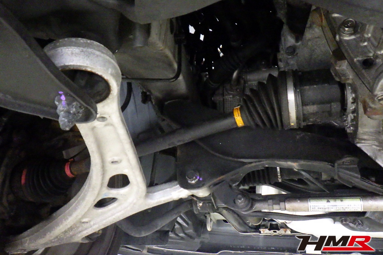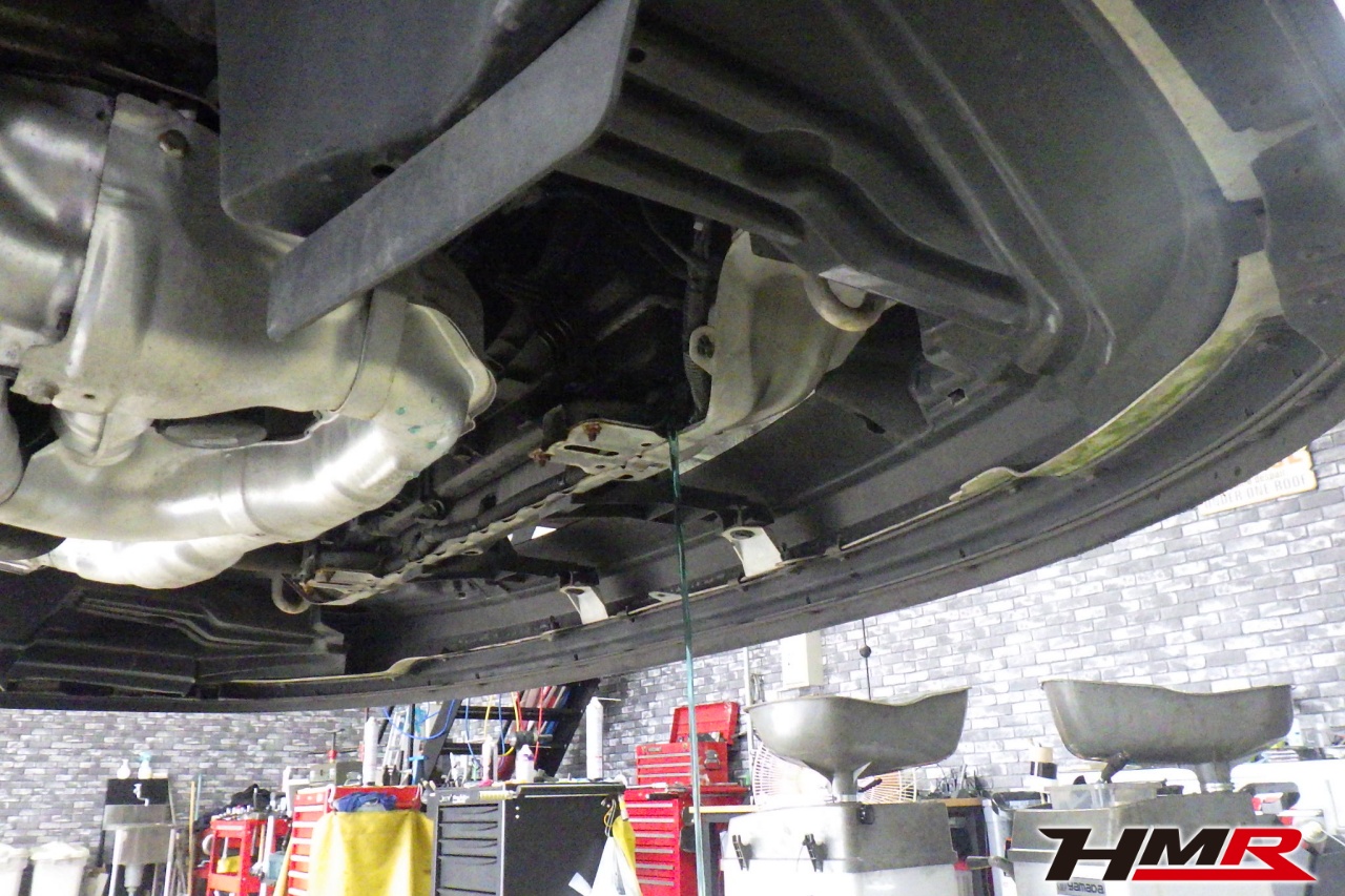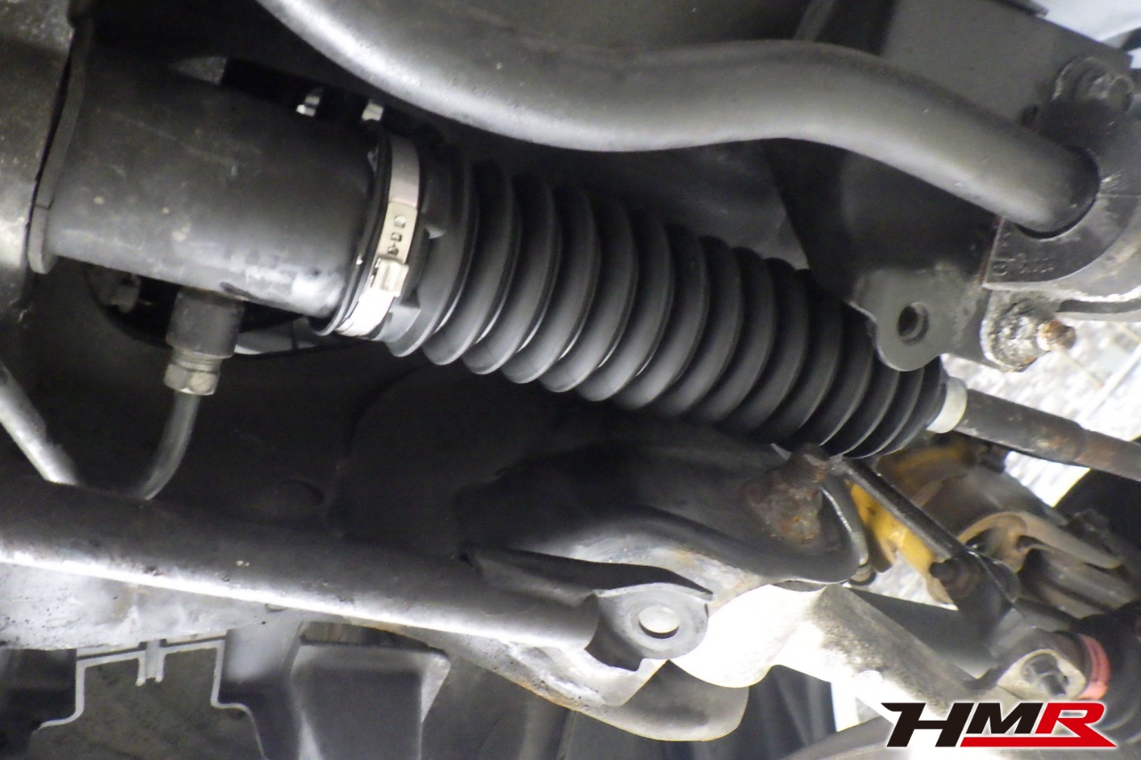 ハブベアリング・ボールジョイント、アーム・リンク類のガタ、ブッシュ・ブーツ類の劣化、エンジン・ミッション・デフからのオイル漏れと各マウント類、タイヤ溝の残量、空気圧の点検しました。左側ラックブーツが切れていましたので交換しました。