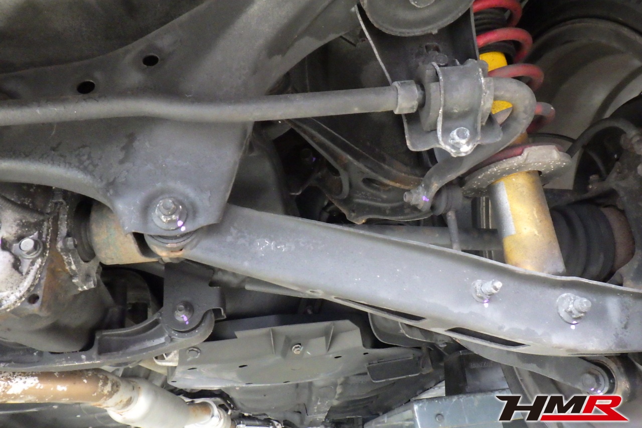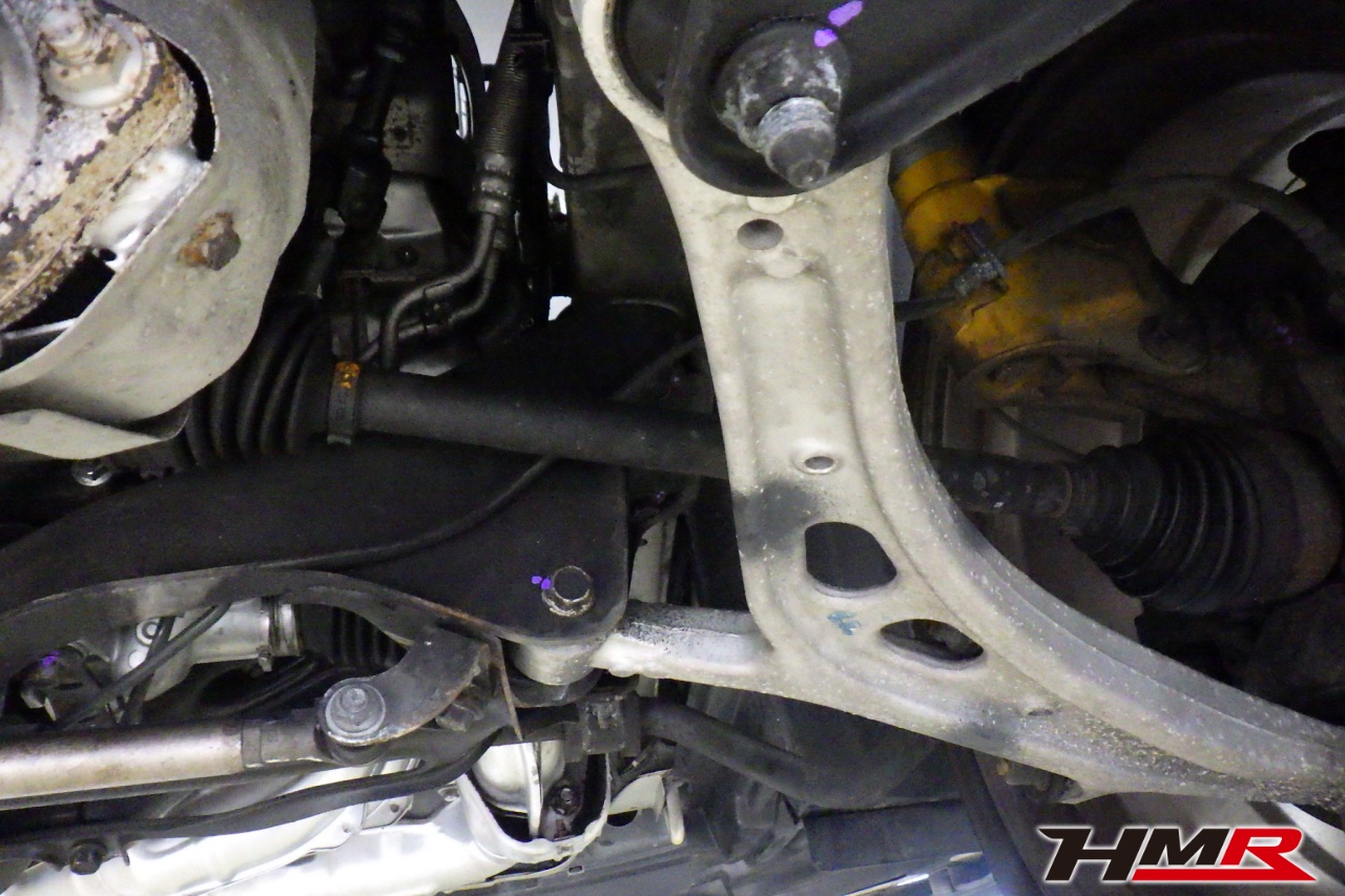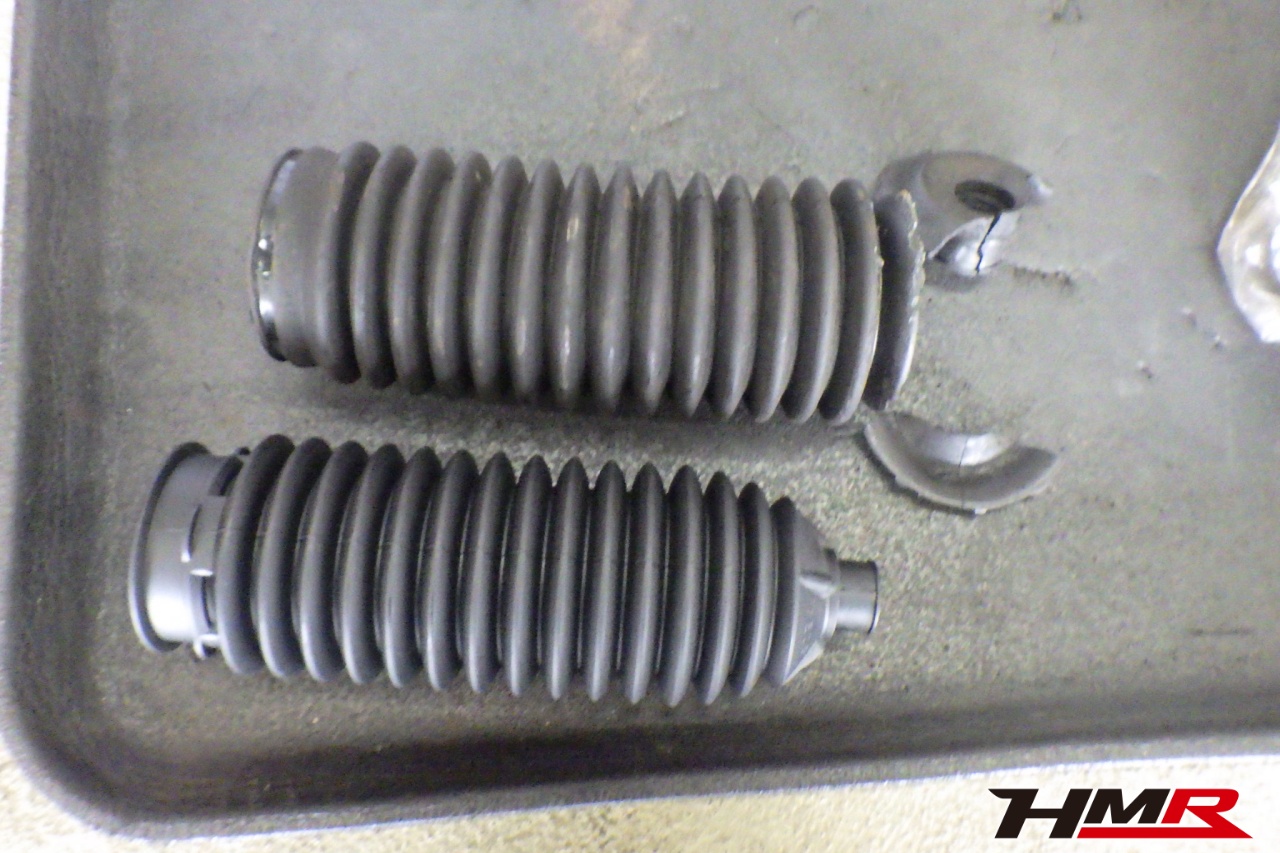 ハブベアリング・ボールジョイント、アーム・リンク類のガタ、ブッシュ・ブーツ類の劣化、エンジン・ミッション・デフからのオイル漏れと各マウント類、タイヤ溝の残量、空気圧の点検しました。左側ラックブーツが切れていましたので交換しました。