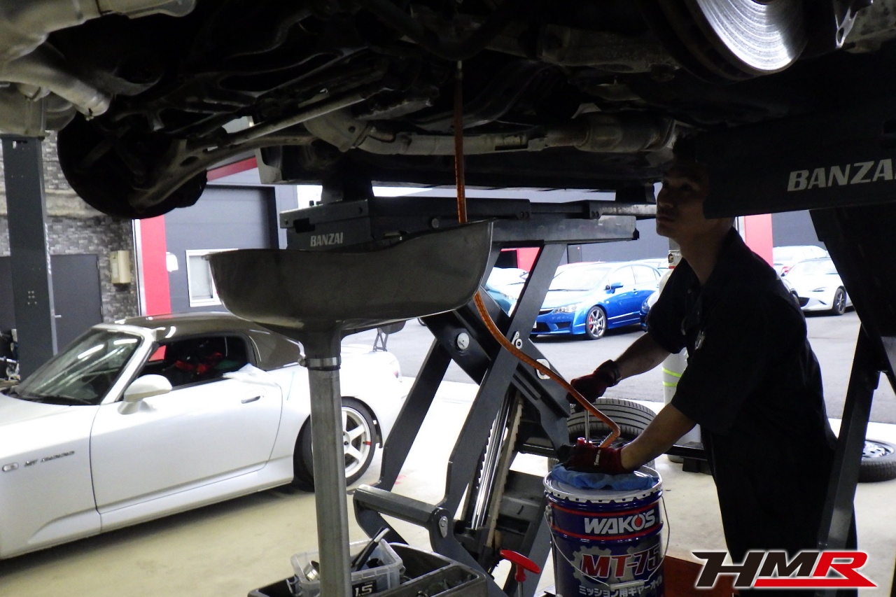 エンジンオイル、オイルフィルター、オイルフィルターセンターボルト、クーラント液、フロント&リアデフオイル、ブレーキフルードを交換しました。エンジンオイルはWAKO’SプロステージS 10W-40、フロント/リアデフオイルはWAKO’S ギアオイルMG-90に交換しています。