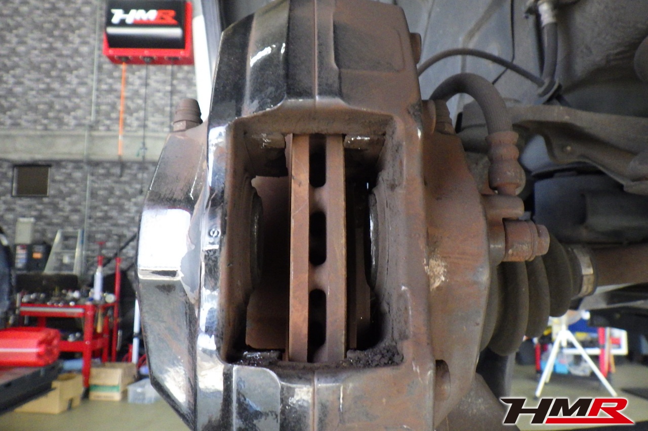 ブレーキキャリパーシール・キャリパーピストン、パッドの残量、ブレーキホースの劣化、ブレーキディスクローターの摩耗をチェックしました。特に問題ありませんでした。パッドの残量はフロント10.0mm・リア6.4mmでした。