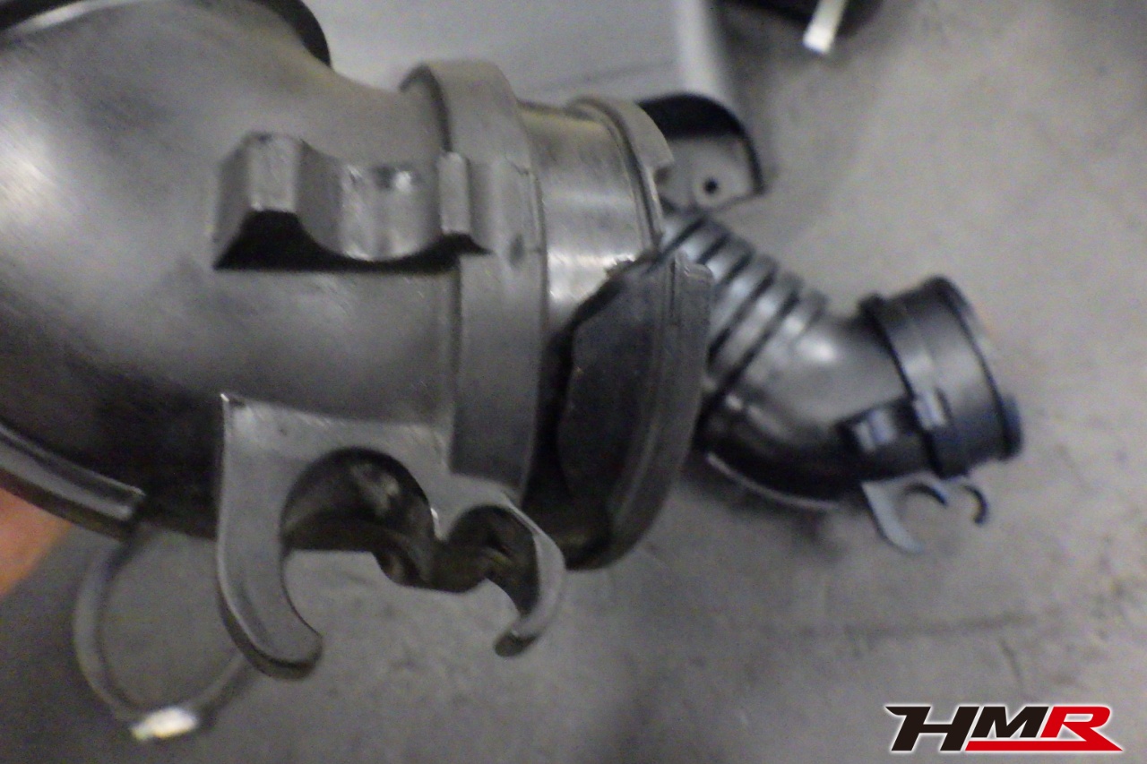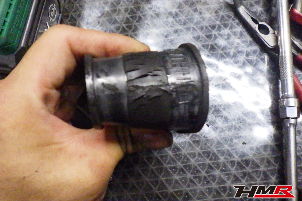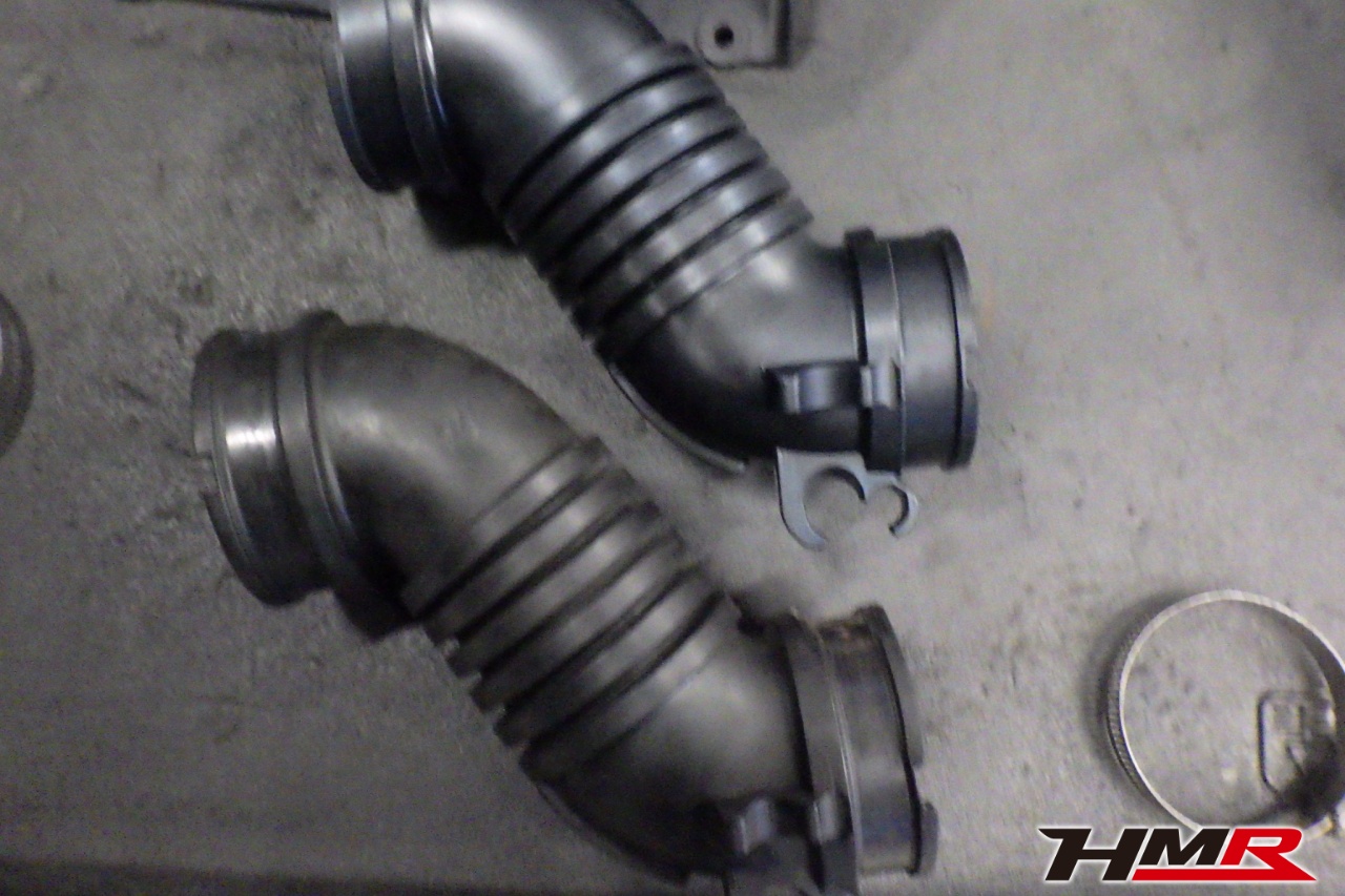 バッテリー、インテークホース、エアクリーナー、補機ベルト、プラグ、ブレーキ・クラッチマスターシリンダー、各部ゴム類の劣化、パッキン類・シール類からのオイル滲み・漏れ、ラジエターの劣化、冷却水漏れ、その他異音などをチェックしました。エアクリーナーに汚れ、サクションホース、インタークーラーホースが切れていましたのでそれぞれ交換しました。