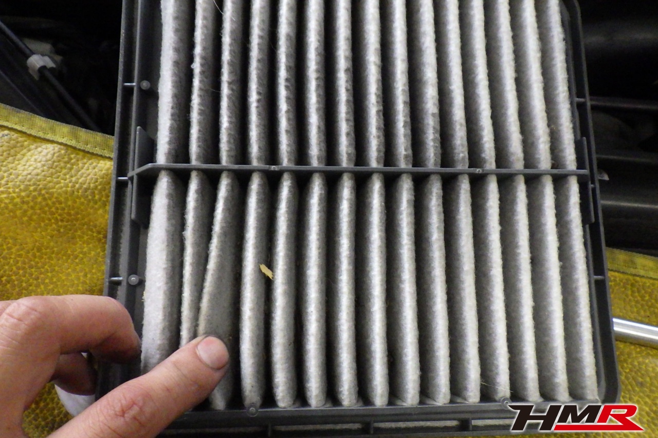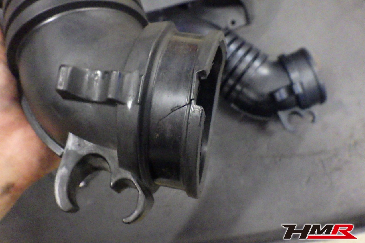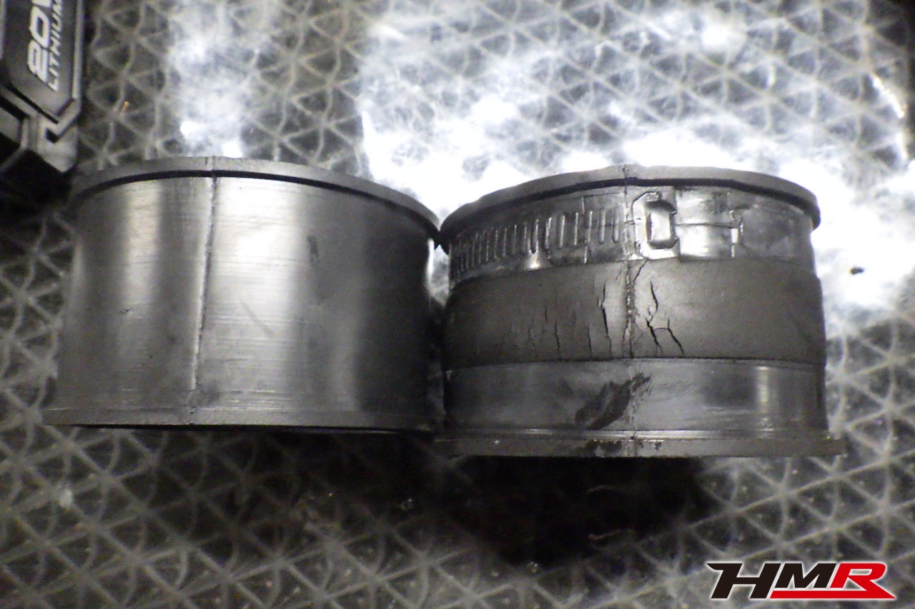 バッテリー、インテークホース、エアクリーナー、補機ベルト、プラグ、ブレーキ・クラッチマスターシリンダー、各部ゴム類の劣化、パッキン類・シール類からのオイル滲み・漏れ、ラジエターの劣化、冷却水漏れ、その他異音などをチェックしました。エアクリーナーに汚れ、サクションホース、インタークーラーホースが切れていましたのでそれぞれ交換しました。