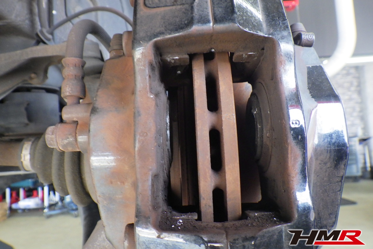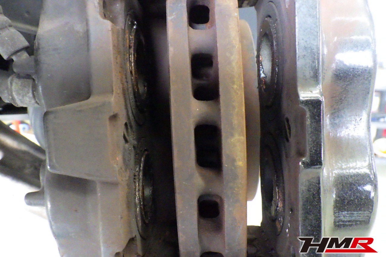 ブレーキキャリパーシール・キャリパーピストン、パッドの残量、ブレーキホースの劣化、ブレーキディスクローターの摩耗をチェックしました。特に問題ありませんでした。パッドの残量はフロント10.0mm・リア6.4mmでした。