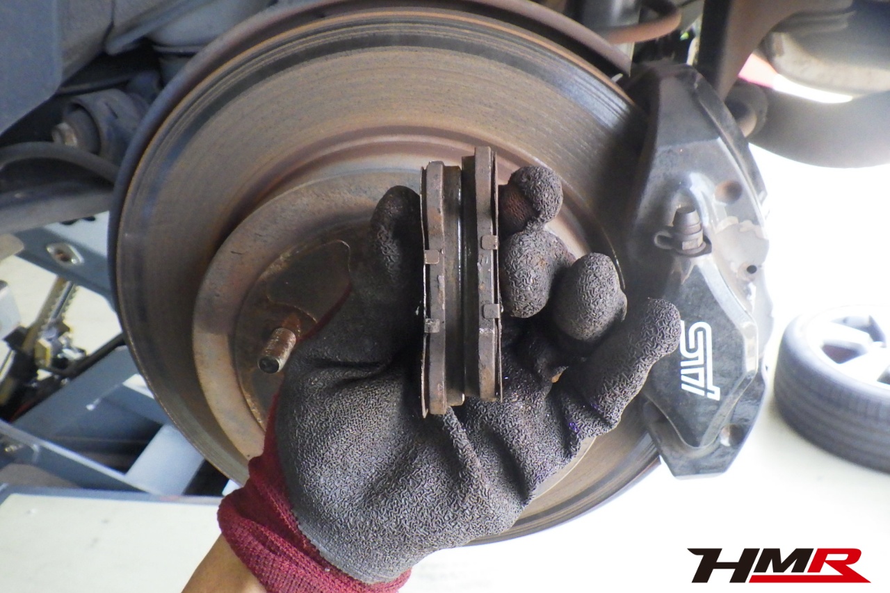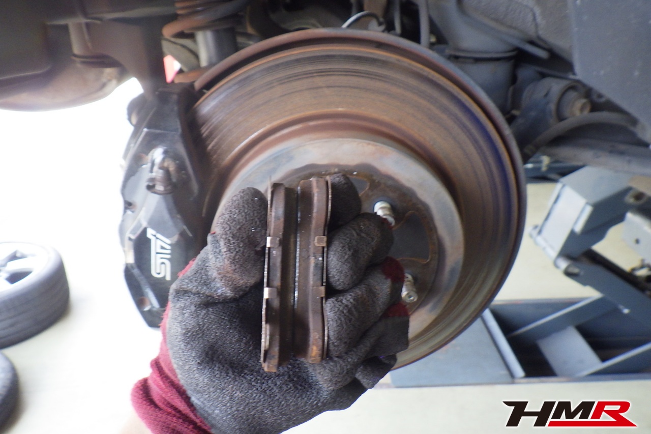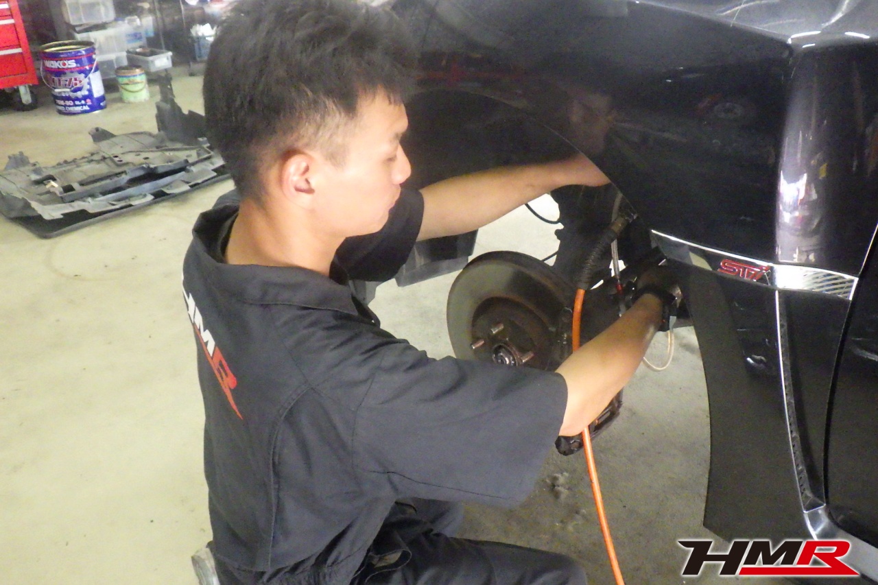 HMR(エイチエムアール)の秋山です。今回はノーマルコンディション 純正18インチ装備のインプレッサハッチバックWRX STI(GRB)の納車前点検整備を行いました。担当メカニックは矢澤です。