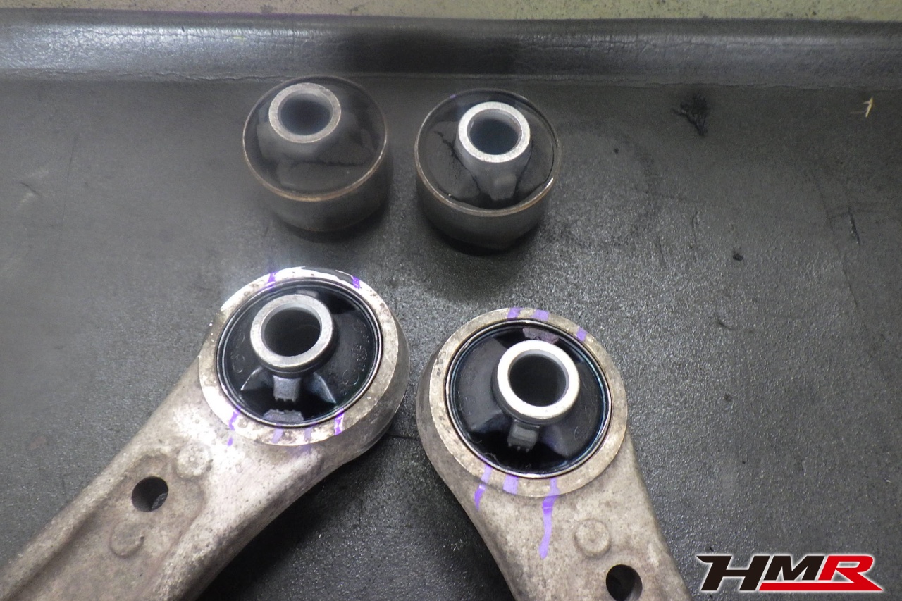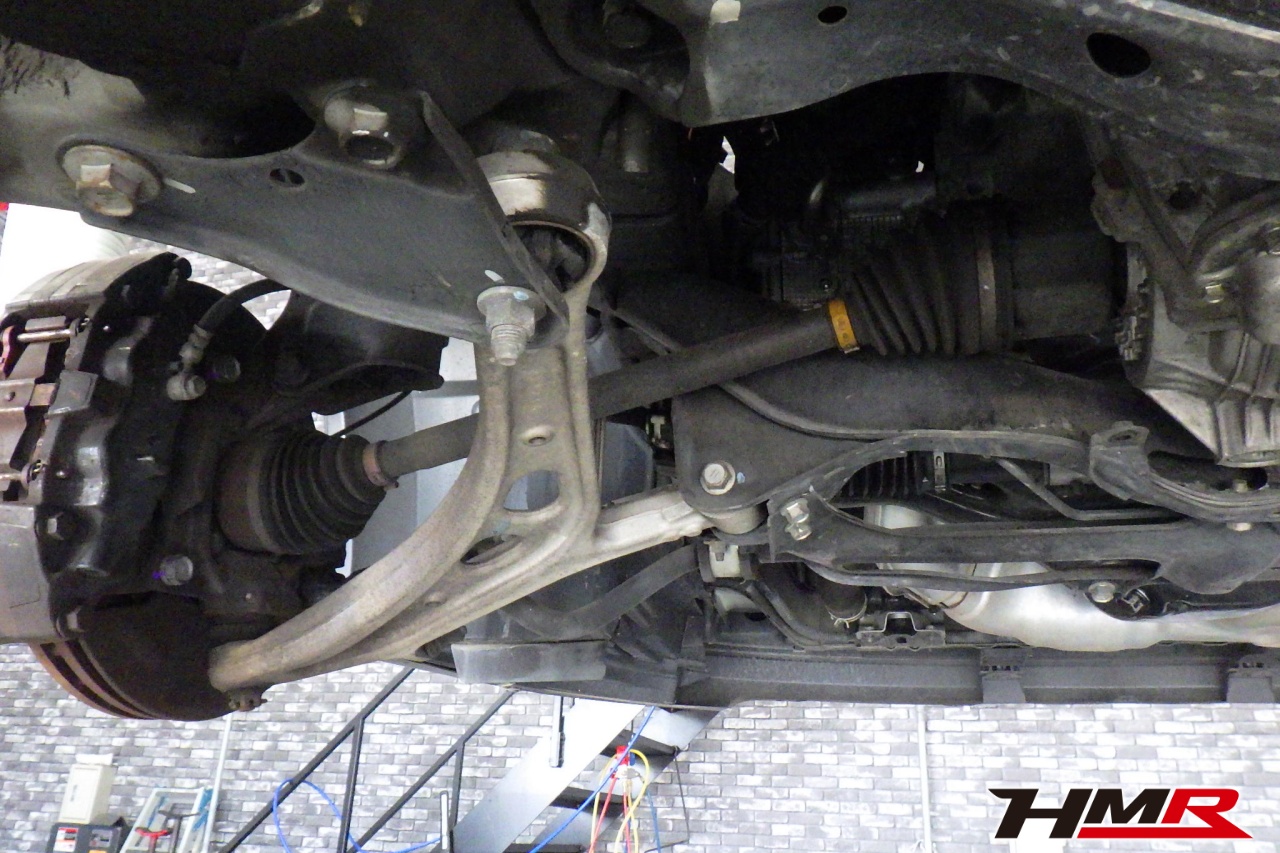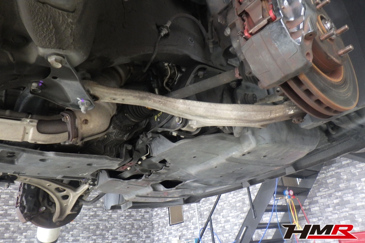 ハブベアリング・ボールジョイント、アーム・リンク類のガタ、ブッシュ・ブーツ類の劣化、エンジン・ミッション・デフからのオイル漏れと各マウント類、タイヤ溝の残量、空気圧の点検しました。左右フロントロアアーム、リアブッシュ、右側ステアリングラックブーツ、右側タイロッドエンドブーツが切れていましたので交換しました。タイヤの残り溝はフロント5.9mm・リア5.7mmでした。