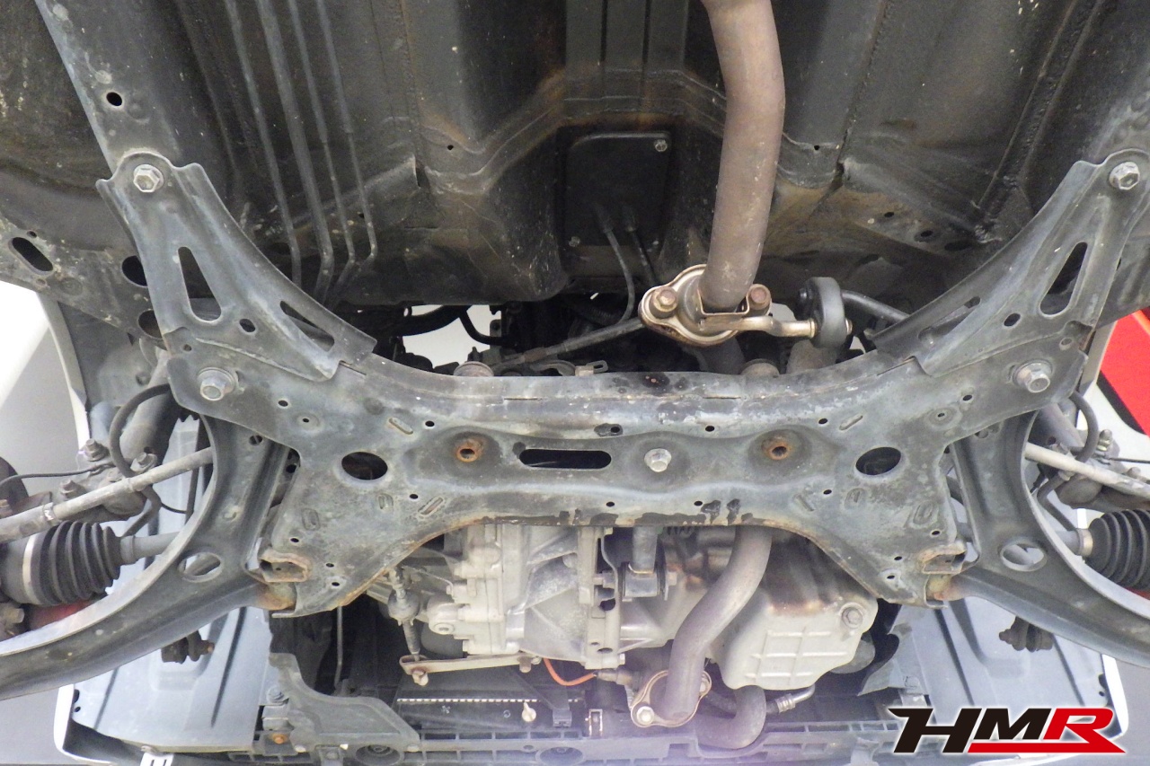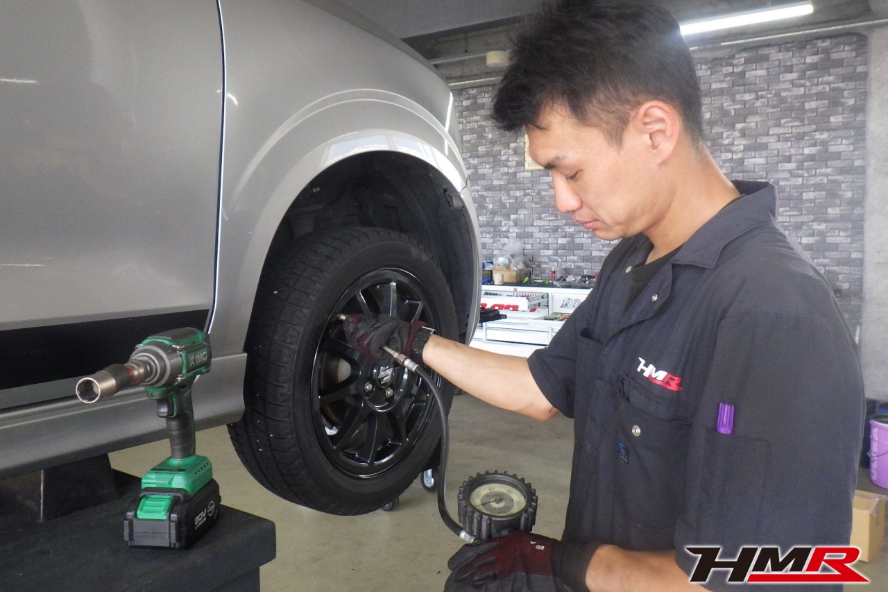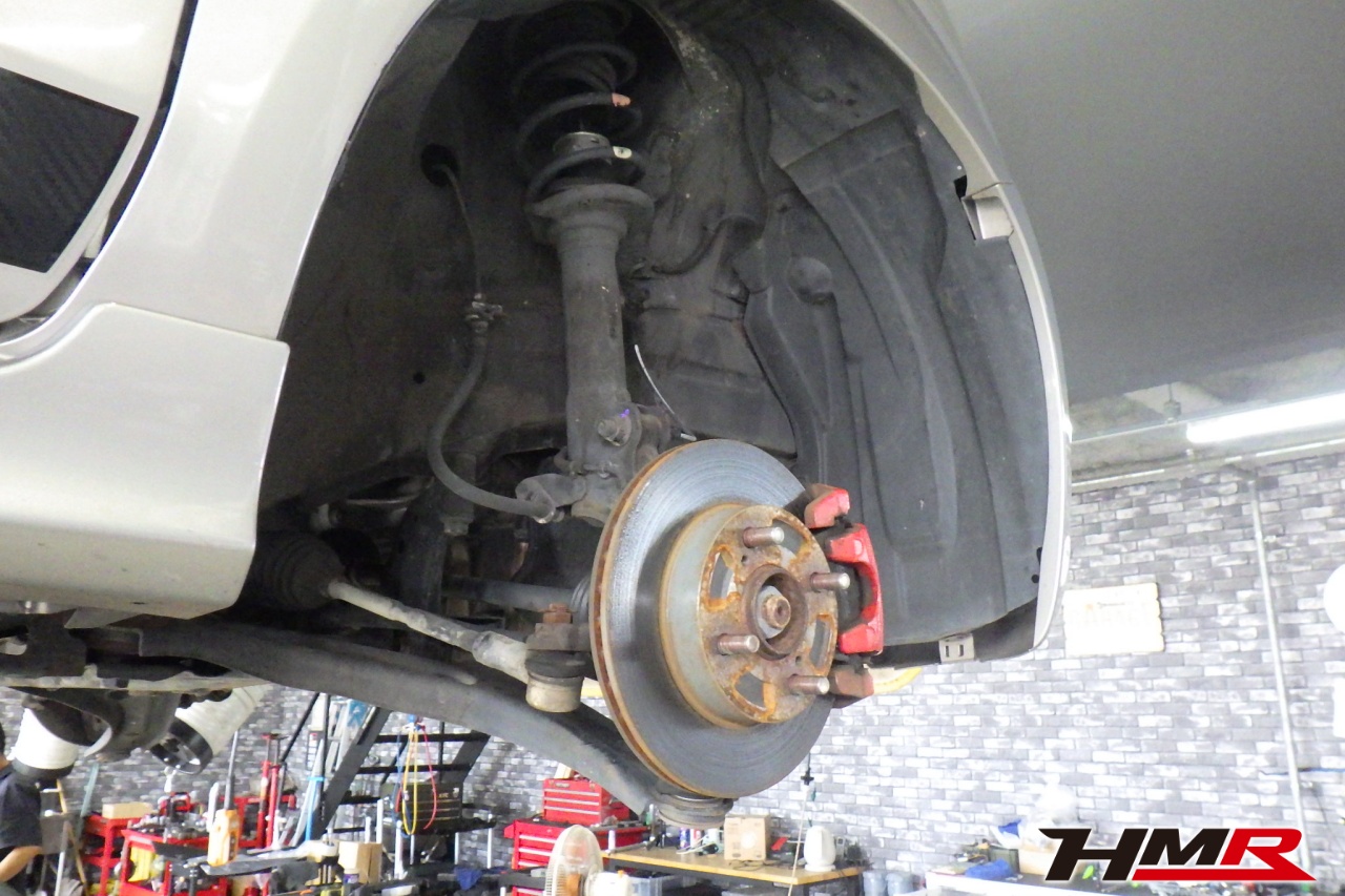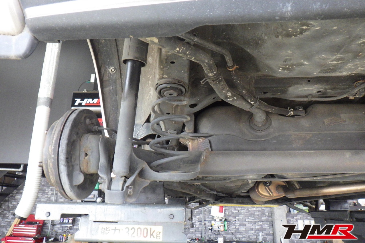 ハブベアリング・ボールジョイント、アーム・リンク類のガタ、ブッシュ・ブーツ類の劣化、エンジン・ミッション・デフからのオイル漏れと各マウント類、タイヤ溝の残量、空気圧の点検しました。右側タイロッドエンドブーツにヒビ、フロントロアアームブッシュにヒビが見られましたがこちらも早急に交換する必要は無かったため今後乗っていく中で交換することをおすすめします。タイヤ溝の残量は、フロント7.7mm・リア7.7mmでした。