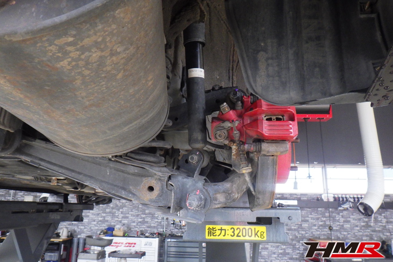 ハブベアリング・ボールジョイント、アーム・リンク類のガタ、ブッシュ・ブーツ類の劣化、エンジン・ミッション・デフからのオイル漏れと各マウント類、タイヤ溝の残量、空気圧の点検しました。フロントロアアームブーツに小さなヒビが見られましたが早急に交換する必要は無かったため、今後乗っていく中で交換することをおすすめします。