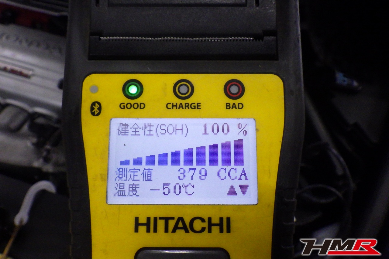 バッテリー、インテークホース、エアクリーナー、補機ベルト、プラグ、ブレーキ・クラッチマスターシリンダー、各部ゴム類の劣化、各パッキン類・シール類からのオイル滲み・漏れ、ラジエターの劣化、冷却水漏れ、その他異音などをチェックしました。特に問題ありませんでした。