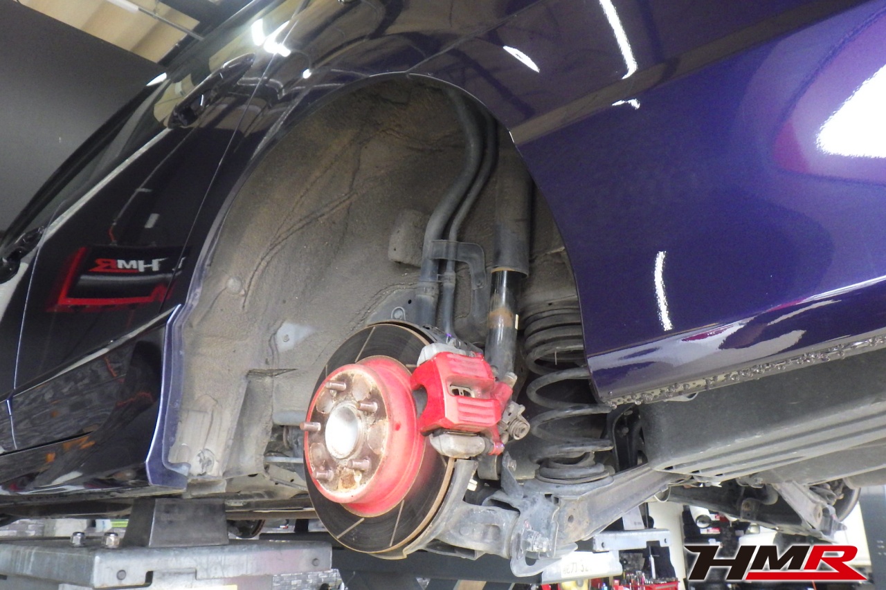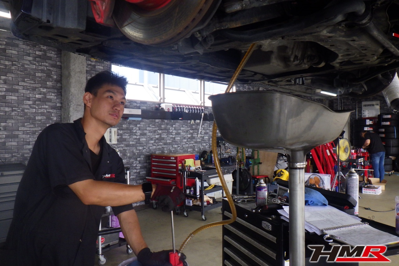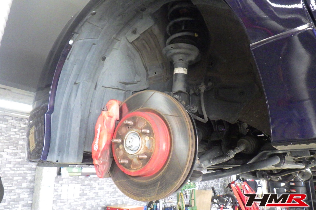 ハブベアリング・ボールジョイント、アーム・リンク類のガタ、ブッシュ・ブーツ類の劣化、エンジン・ミッション・デフからのオイル漏れと各マウント類、タイヤ溝の残量、空気圧の点検しました。フロントロアアームブーツに小さなヒビが見られましたが早急に交換する必要は無かったため、今後乗っていく中で交換することをおすすめします。