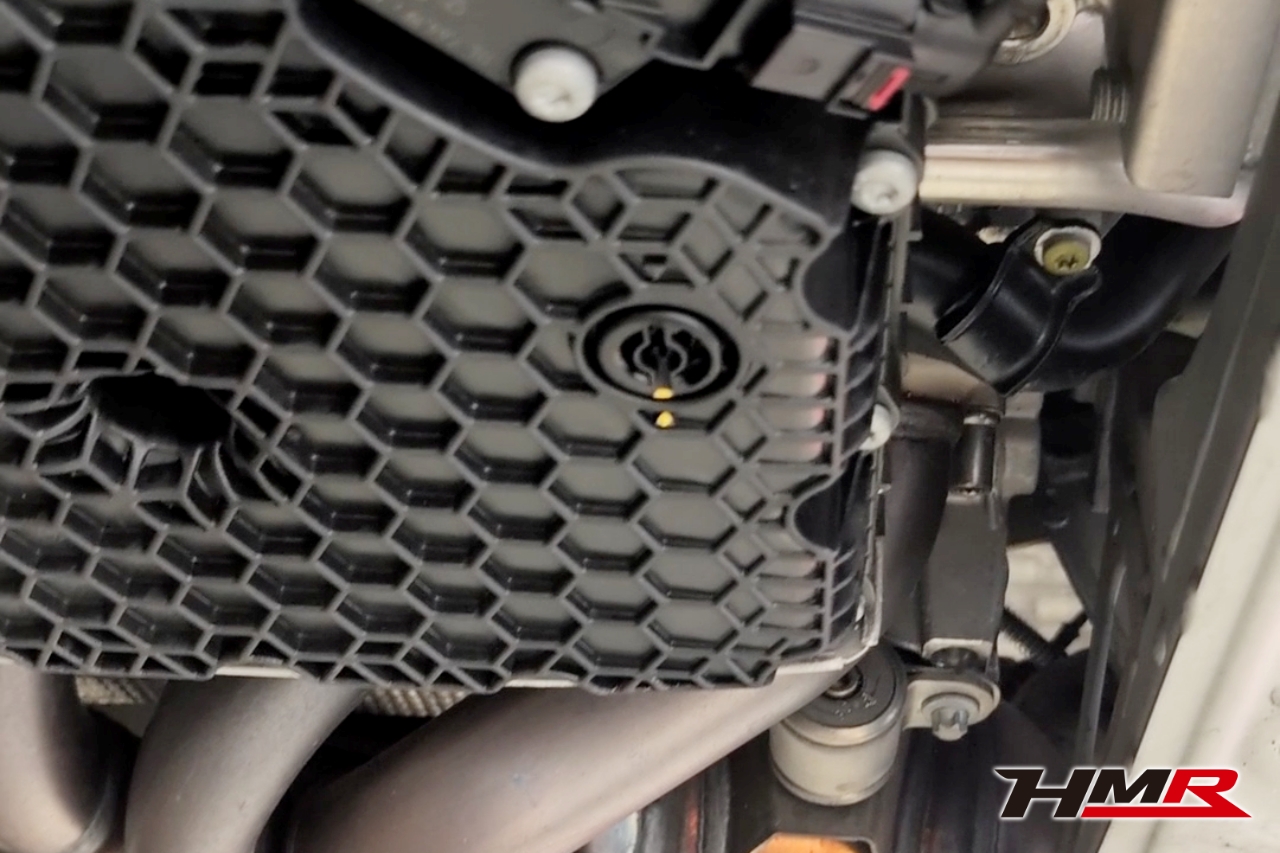 ドレンボルトが樹脂製で国産車では見ない形状です。オイル交換時はパッキンだけではなくドレンボルトとセットで新品に交換します。