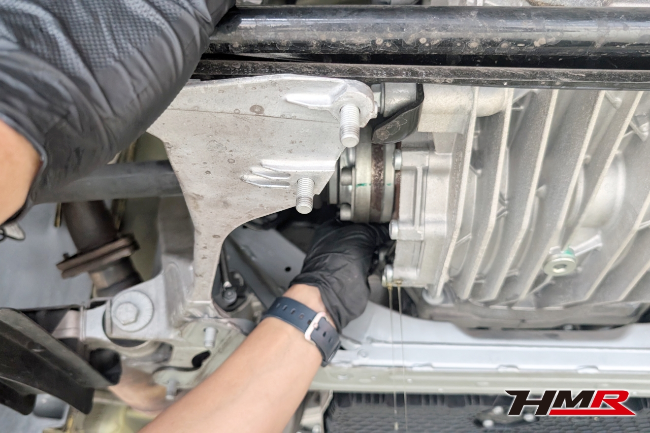 ミッションオイルは国産車と同じくフィーラープラグを緩めてからドレンボルトを外して抜いていきます。