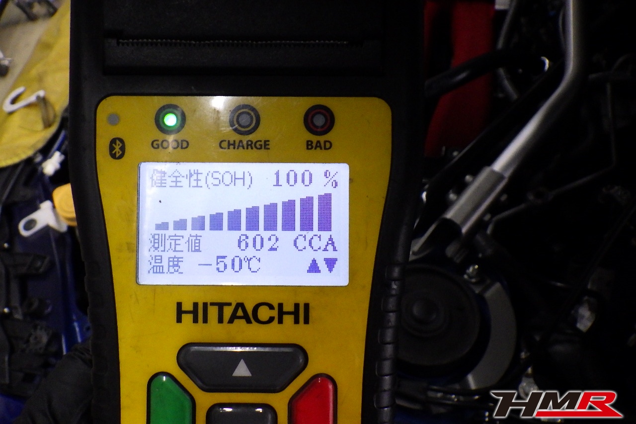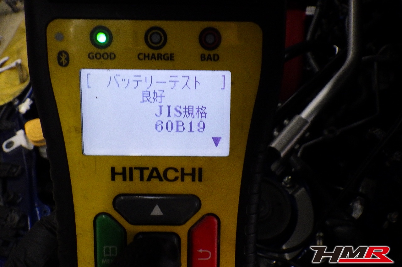 バッテリー、インテークホース、エアクリーナー、補機ベルト、プラグ、ブレーキ・クラッチマスターシリンダー、各部ゴム類の劣化、パッキン類・シール類からのオイル滲み・漏れ、ラジエターの劣化、冷却水漏れ、その他異音などをチェックしました。バッテリーが弱っていましたので交換しました。またそれに伴いバッテリートレーの交換も行いました。