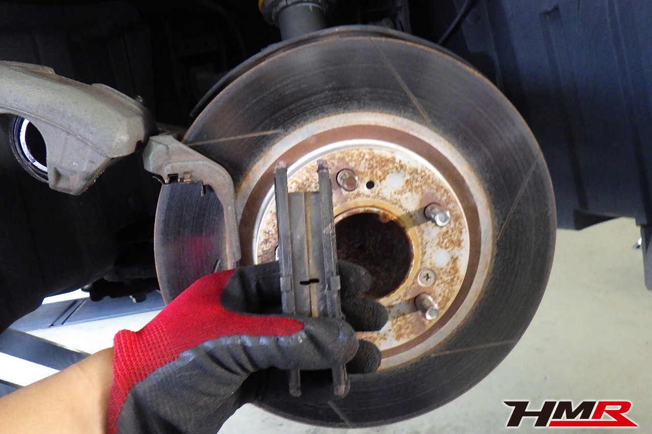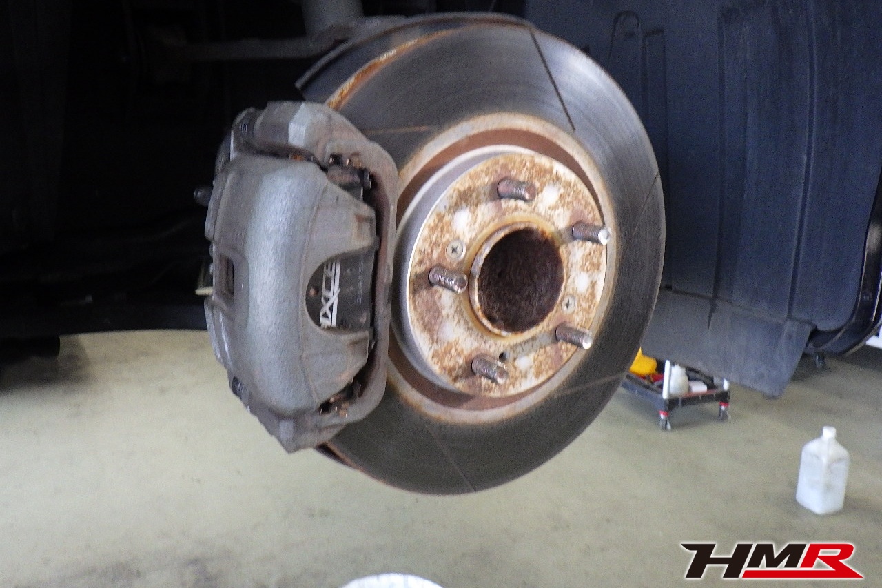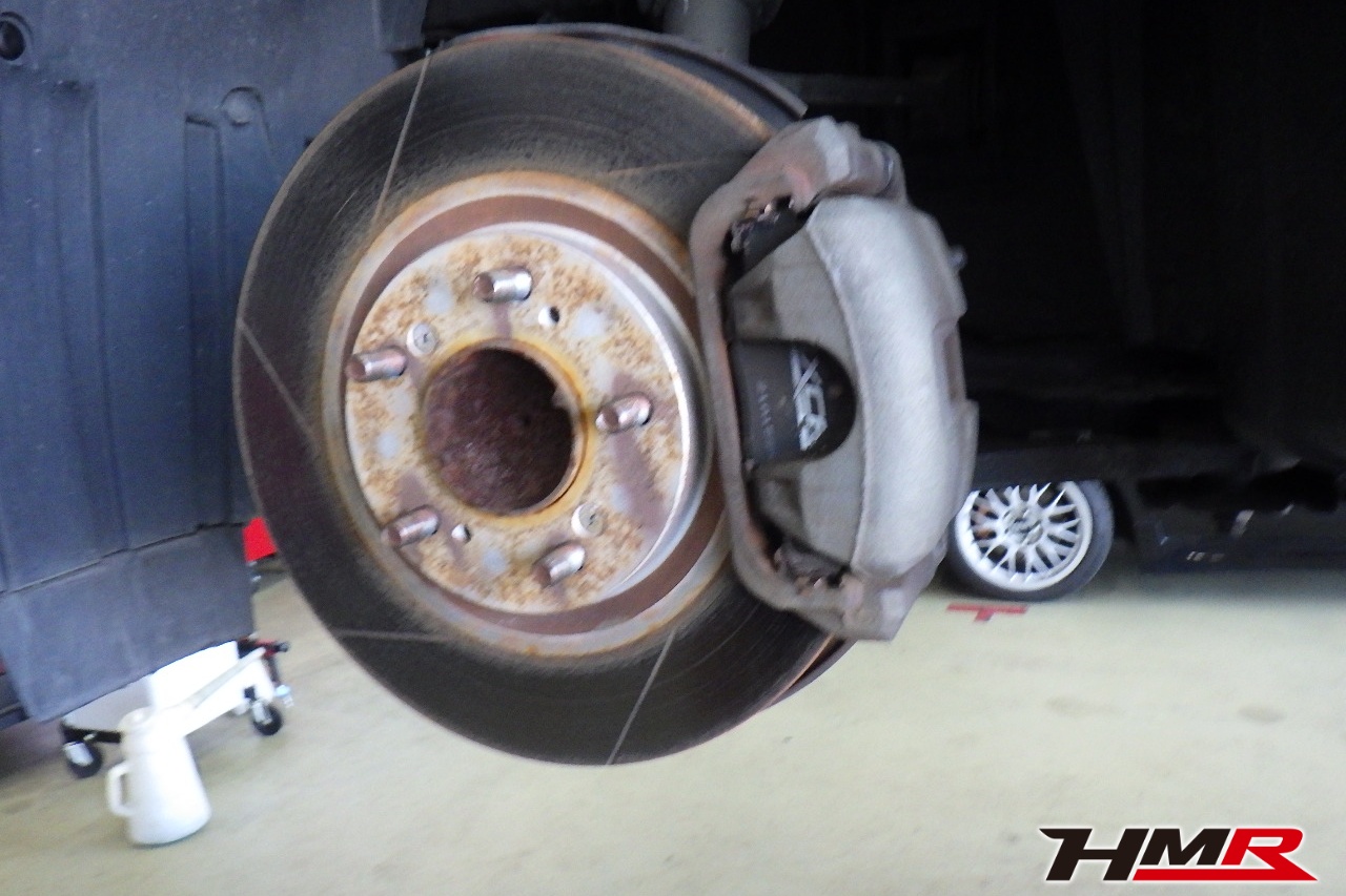 ブレーキキャリパーシール・キャリパーピストン、パッドの残量、ブレーキホースの劣化、ブレーキディスクローターの摩耗をチェックしました。フロント右側キャリパーピストンダストブーツが切れていましたので交換しました。パッドの残量はフロント8.6mm・リア7.7mmでした。