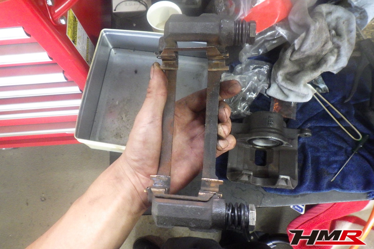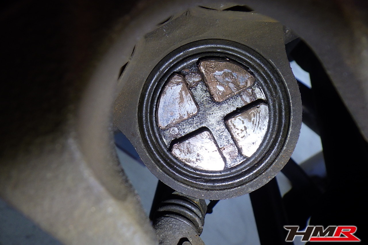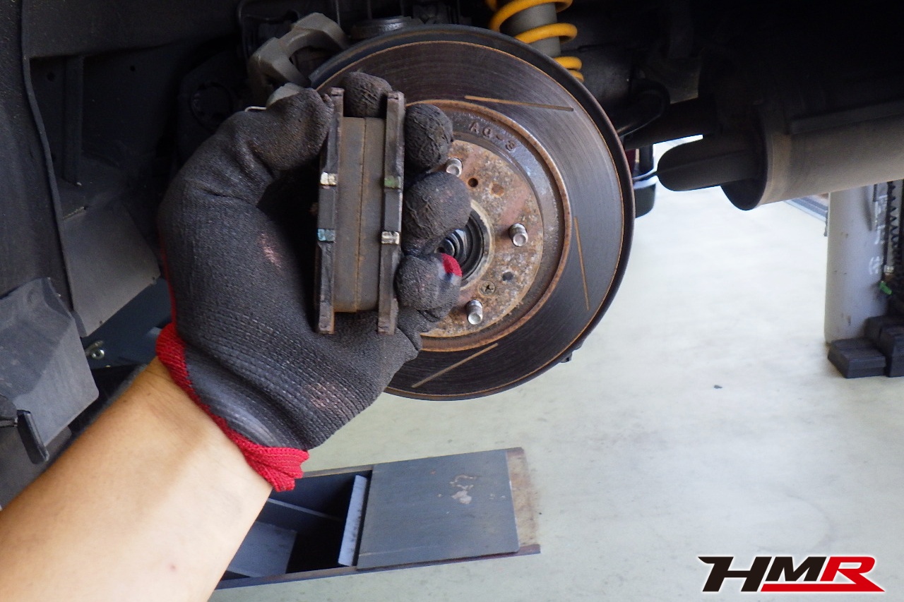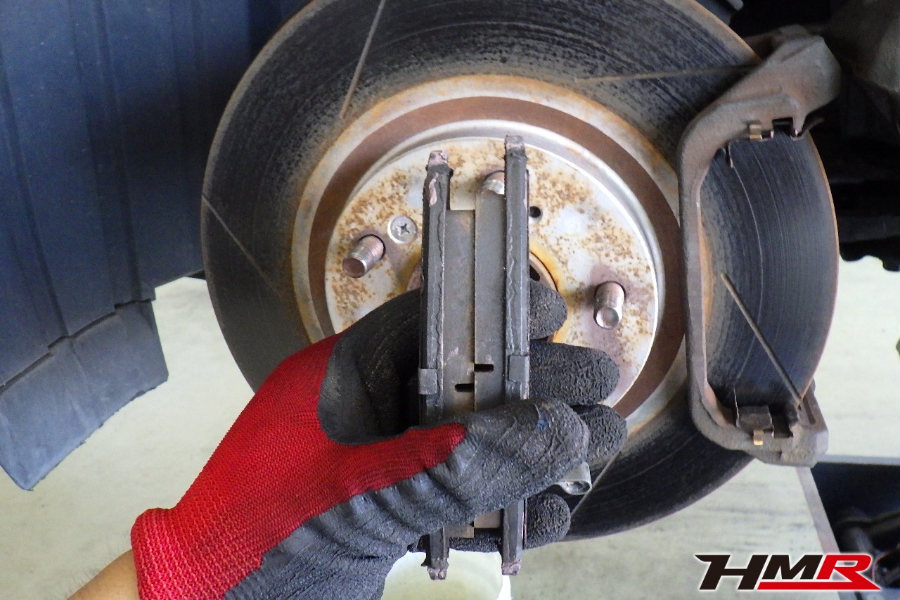 ブレーキキャリパーシール・キャリパーピストン、パッドの残量、ブレーキホースの劣化、ブレーキディスクローターの摩耗をチェックしました。フロント右側キャリパーピストンダストブーツが切れていましたので交換しました。パッドの残量はフロント8.6mm・リア7.7mmでした。