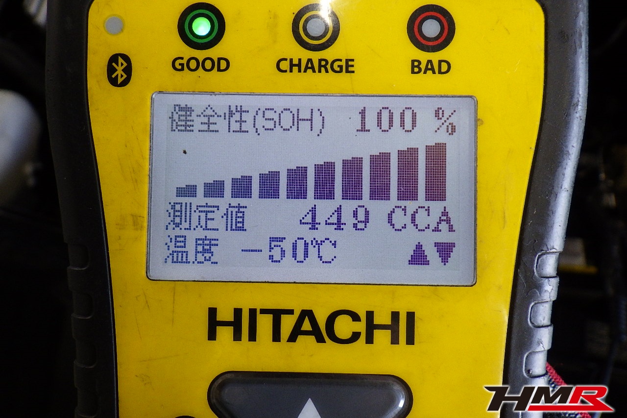 バッテリー、インテークホース、エアクリーナー、補機ベルト、プラグ、ブレーキ・クラッチマスターシリンダー、各部ゴム類の劣化、パッキン類・シール類からのオイル滲み・漏れ、ラジエターの劣化、冷却水漏れ、その他異音などをチェックしました。特に問題ありませんでした。