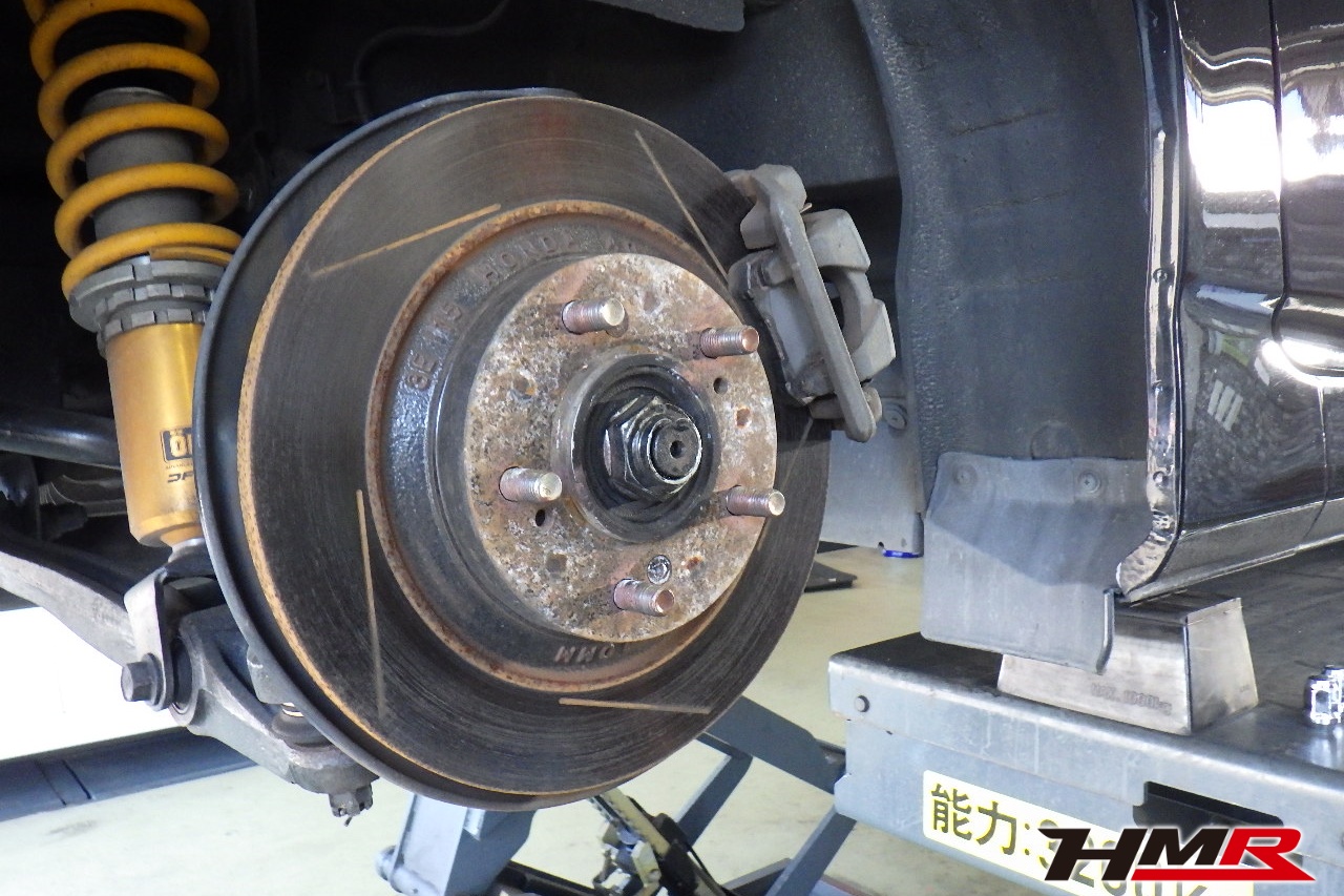 HMR(エイチエムアール)の秋山です。今回はCE28 17インチ オーリンズ車高調装着の納車前点検整備を行いました。担当メカニックは立村です。