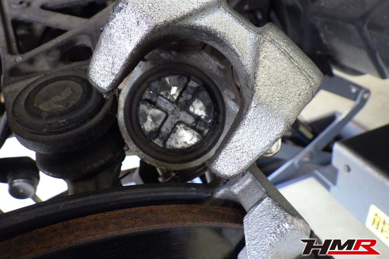 ブレーキキャリパーシール・キャリパーピストン、パッドの残量、ブレーキホースの劣化、ブレーキディスクローターの摩耗をチェックしました。パッドの残量はフロント5.8mm・リア4.8mmでした。