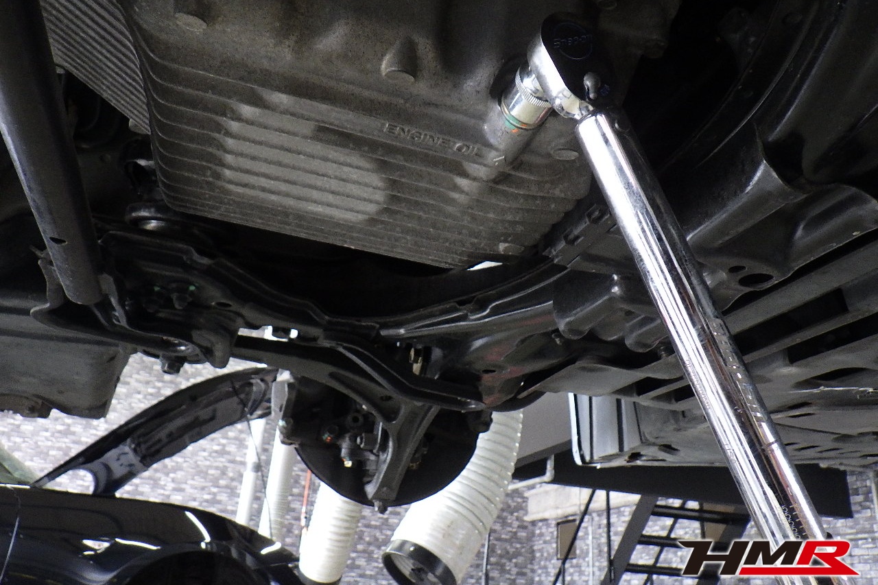 ハブベアリング・ボールジョイント、アーム・リンク類のガタ、ブッシュ・ブーツ類の劣化、エンジン・ミッション・デフからのオイル漏れと各マウント類、タイヤ溝の残量、空気圧の点検しました。フロント左右フロントロアアームブッシュにヒビ、リア左右トーコンロッドブールにヒビが見られましたが、こちらも早急に交換する必要は無いため今後交換することをおすすめします。タイヤの残り溝がフロント7.1mm・リア7.0mmでした。