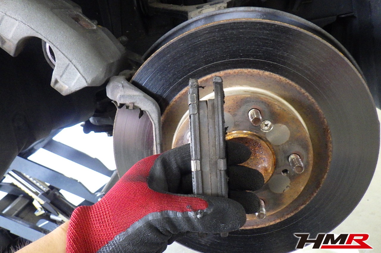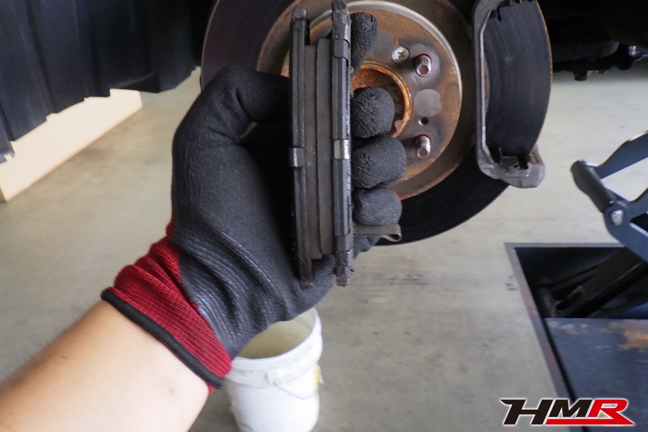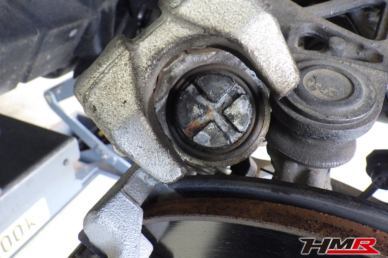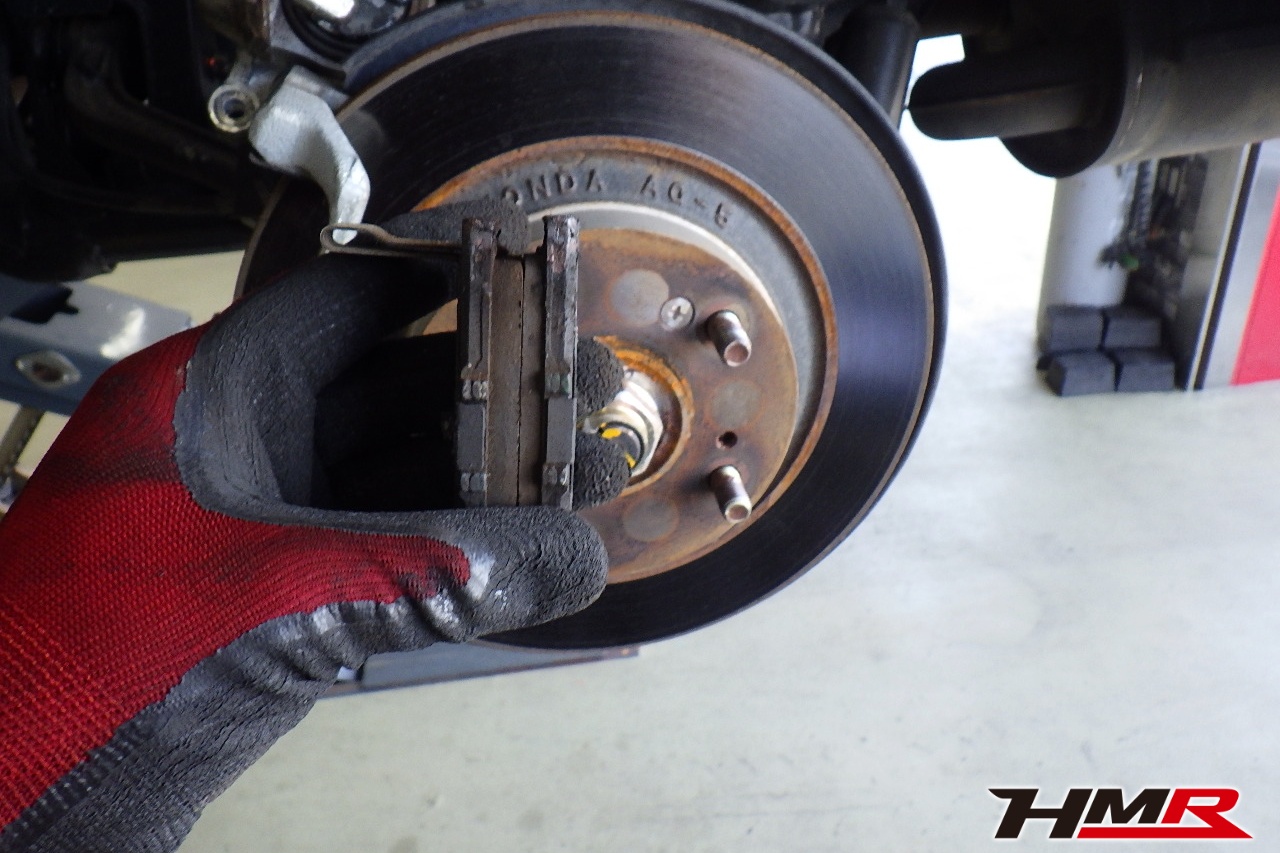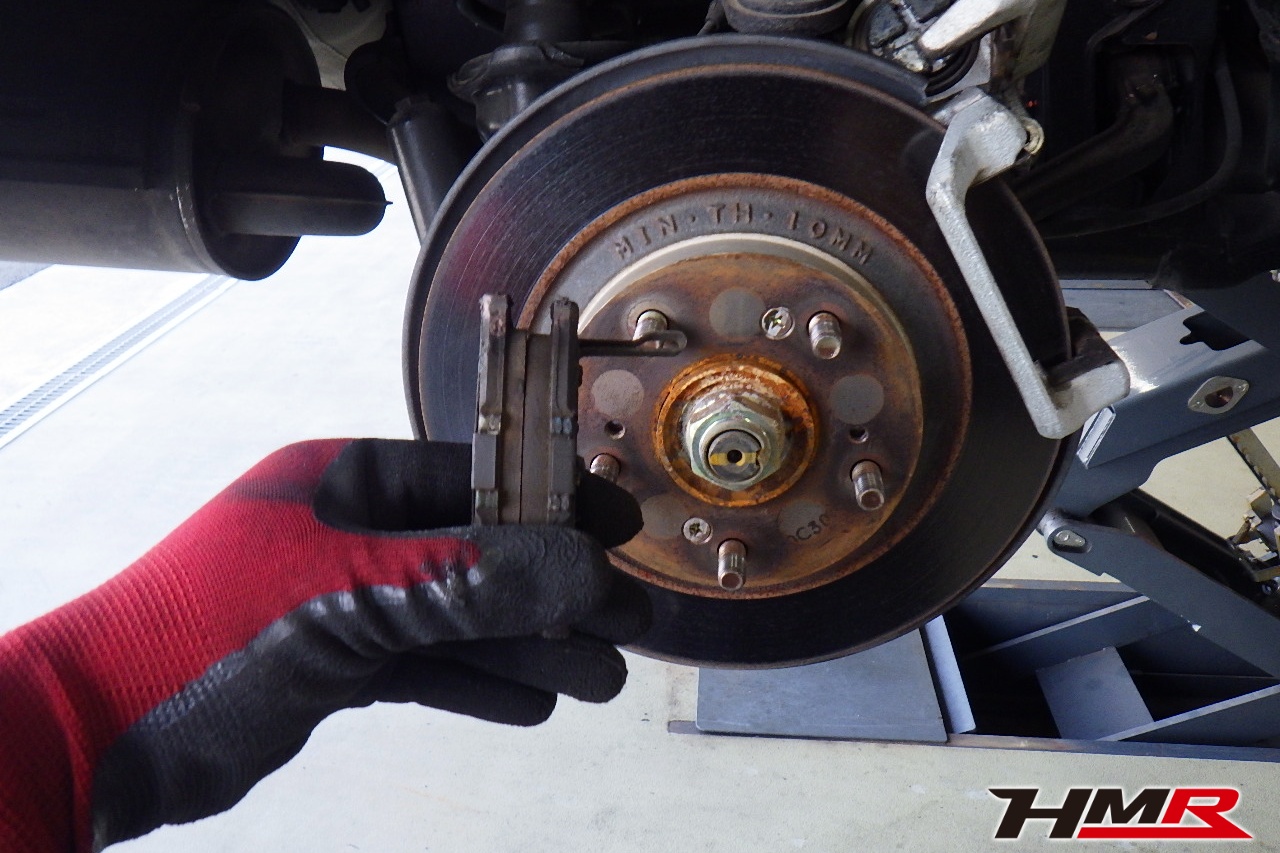 ブレーキキャリパーシール・キャリパーピストン、パッドの残量、ブレーキホースの劣化、ブレーキディスクローターの摩耗をチェックしました。パッドの残量はフロント5.8mm・リア4.8mmでした。