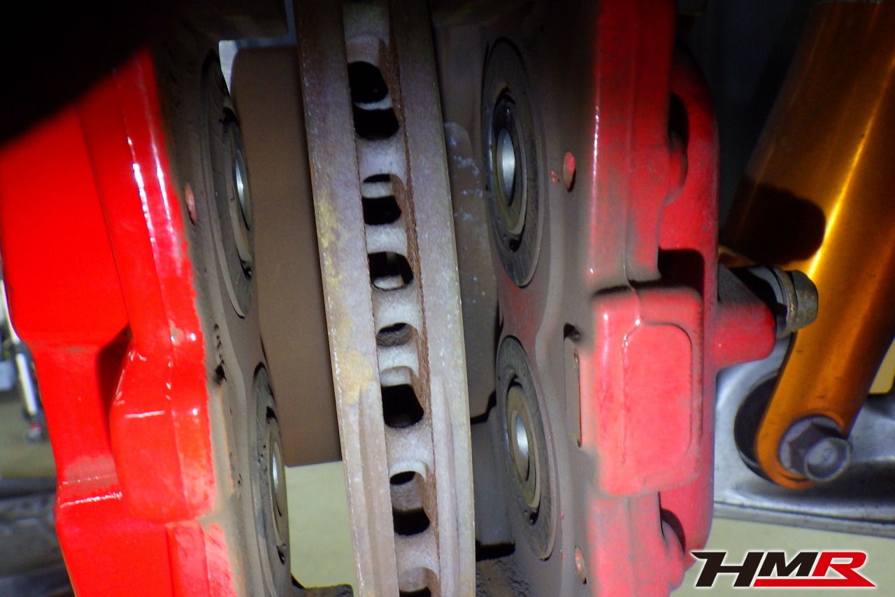 ブレーキキャリパーシール・キャリパーピストン、パッドの残量、ブレーキホースの劣化、ブレーキディスクローターの摩耗をチェックしました。パッドの残量はフロント6.5mm・リア6.6mmでした。