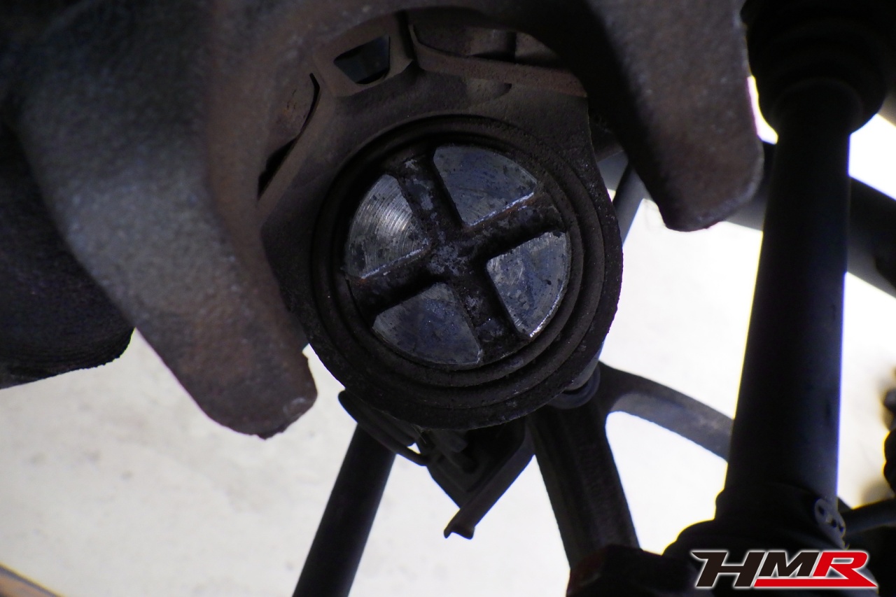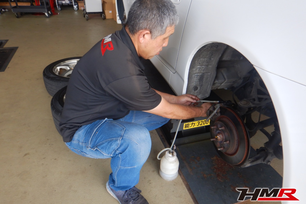 ブレーキキャリパーシール・キャリパーピストン、パッドの残量、ブレーキホースの劣化、ブレーキディスクローターの摩耗をチェックしました。リア左側キャリパーが固着していましたのでオーバーホールを行いました。パッドの残量はフロント7.4mm・リア6.9mmでした。