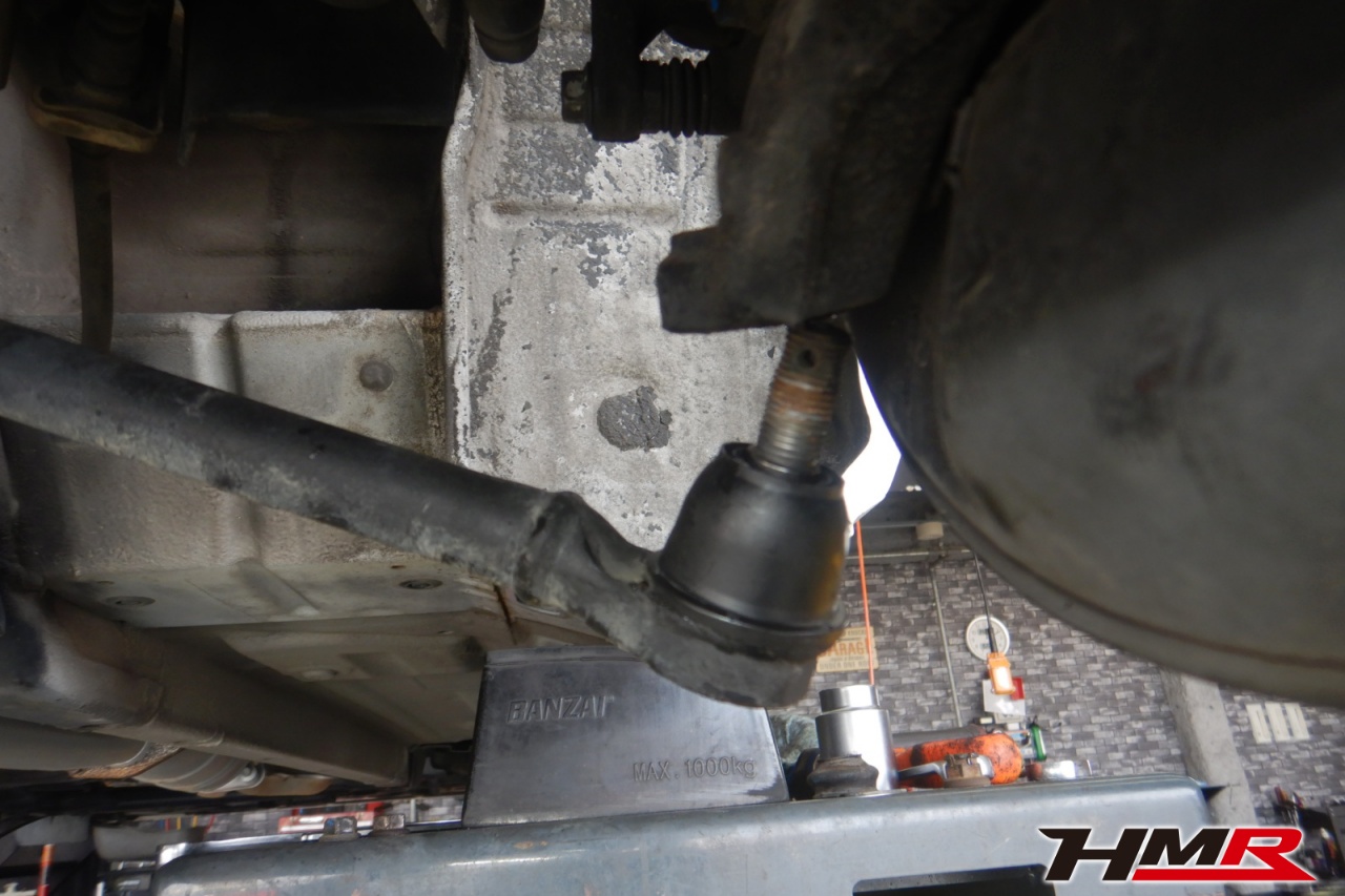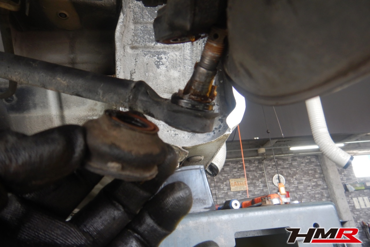 ハブベアリング・ボールジョイント、アーム・リンク類のガタ、ブッシュ・ブーツ類の劣化、エンジン・ミッション・デフからのオイル漏れと各マウント類、タイヤ溝の残量、空気圧の点検しました。リア左右スタビリンクブーツ、左右トーコンブーツが切れていましたので交換しました。タイヤの残り溝がフロント5.0mm・リア3.0mmでした。