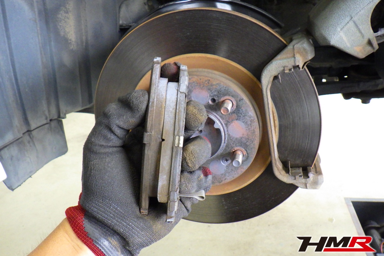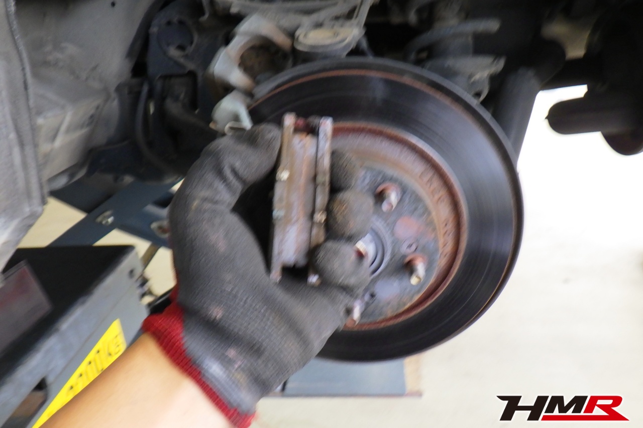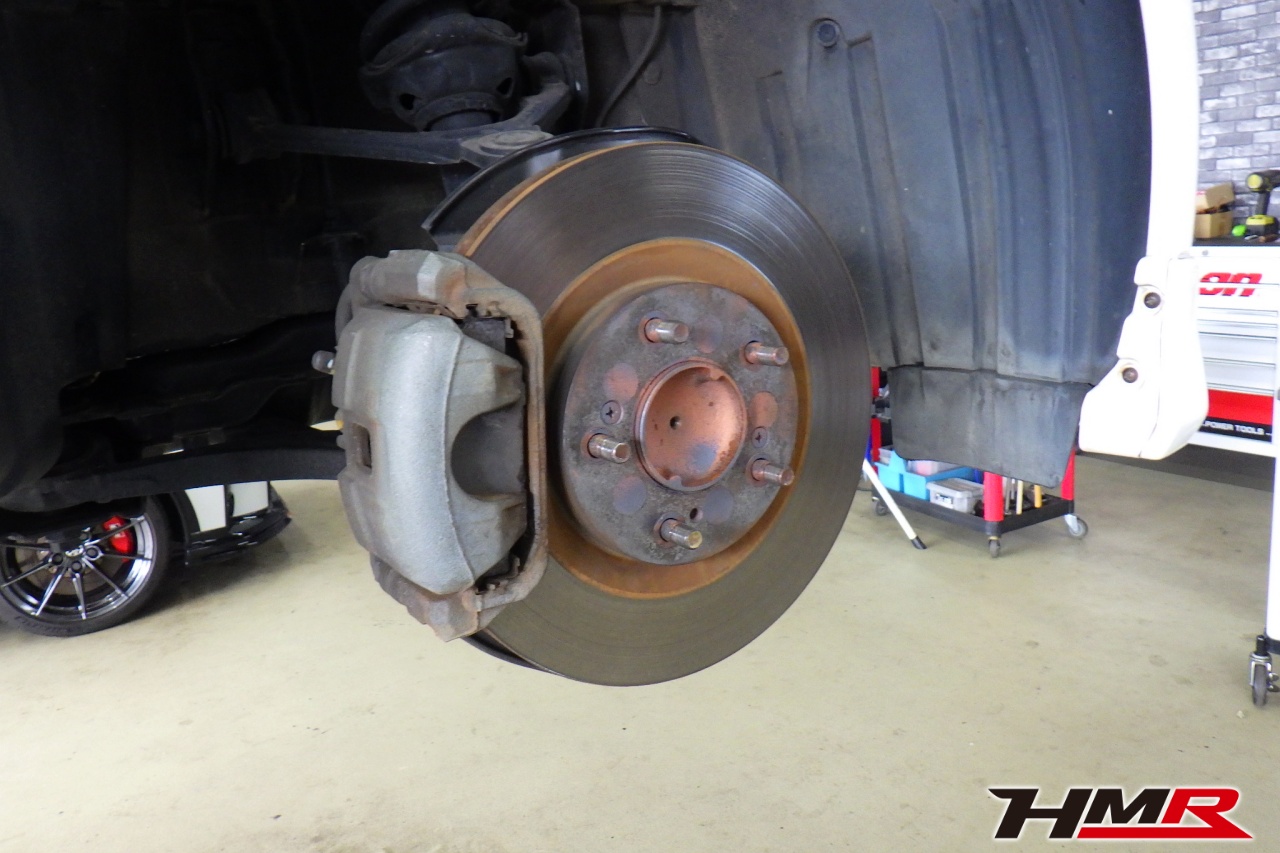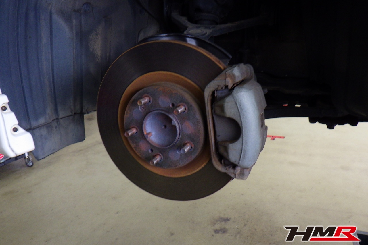 ブレーキキャリパーシール・キャリパーピストン、パッドの残量、ブレーキホースの劣化、ブレーキディスクローターの摩耗をチェックしました。リア左側キャリパーが固着していましたのでオーバーホールを行いました。パッドの残量はフロント7.4mm・リア6.9mmでした。