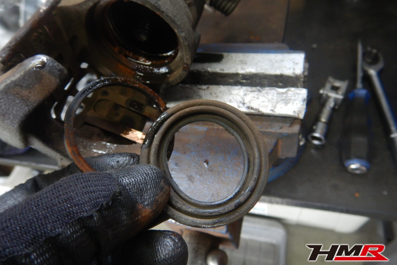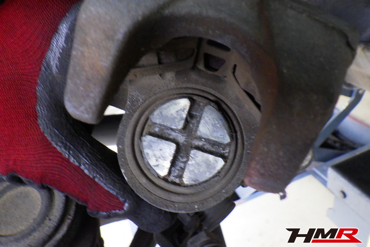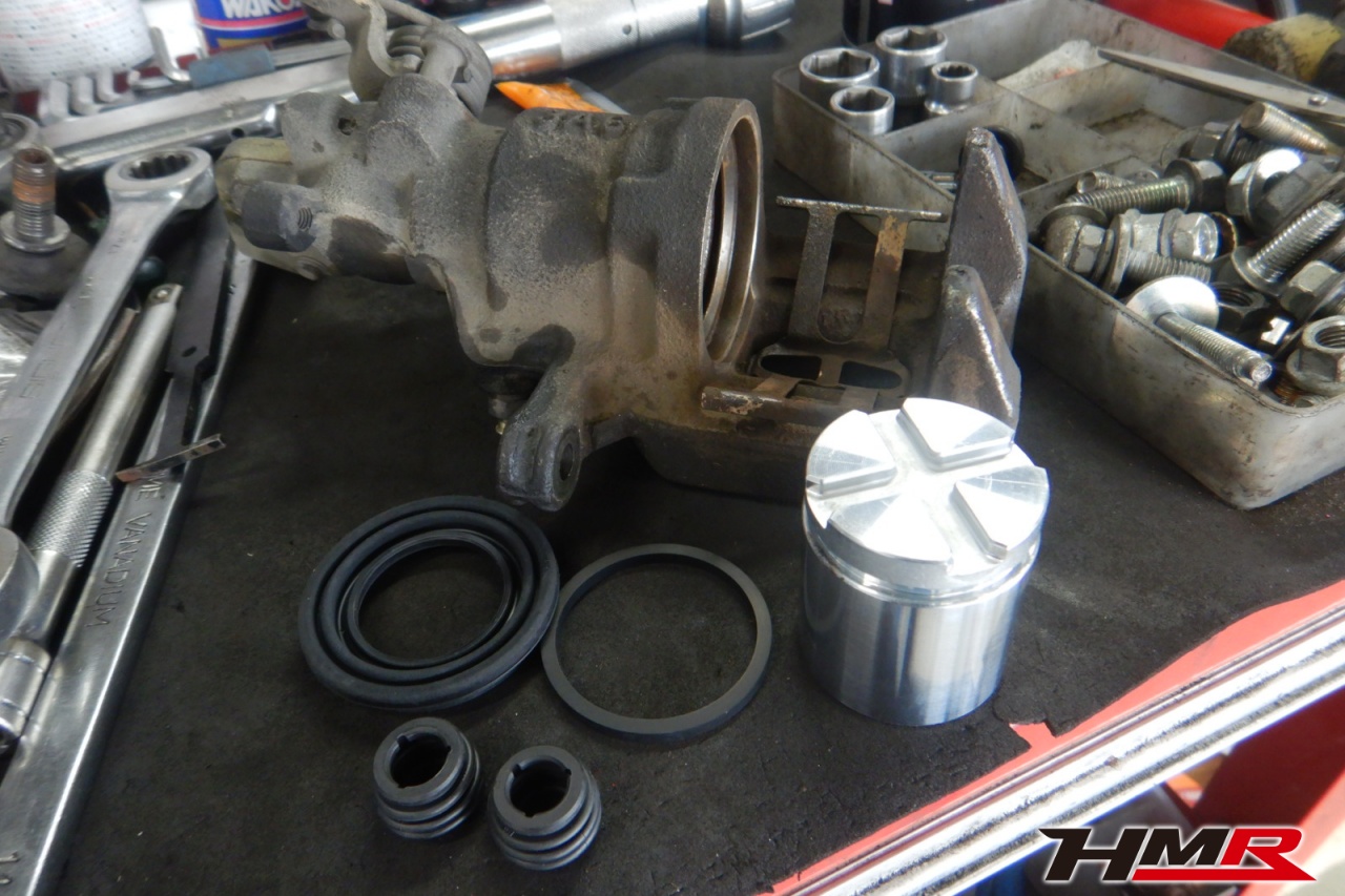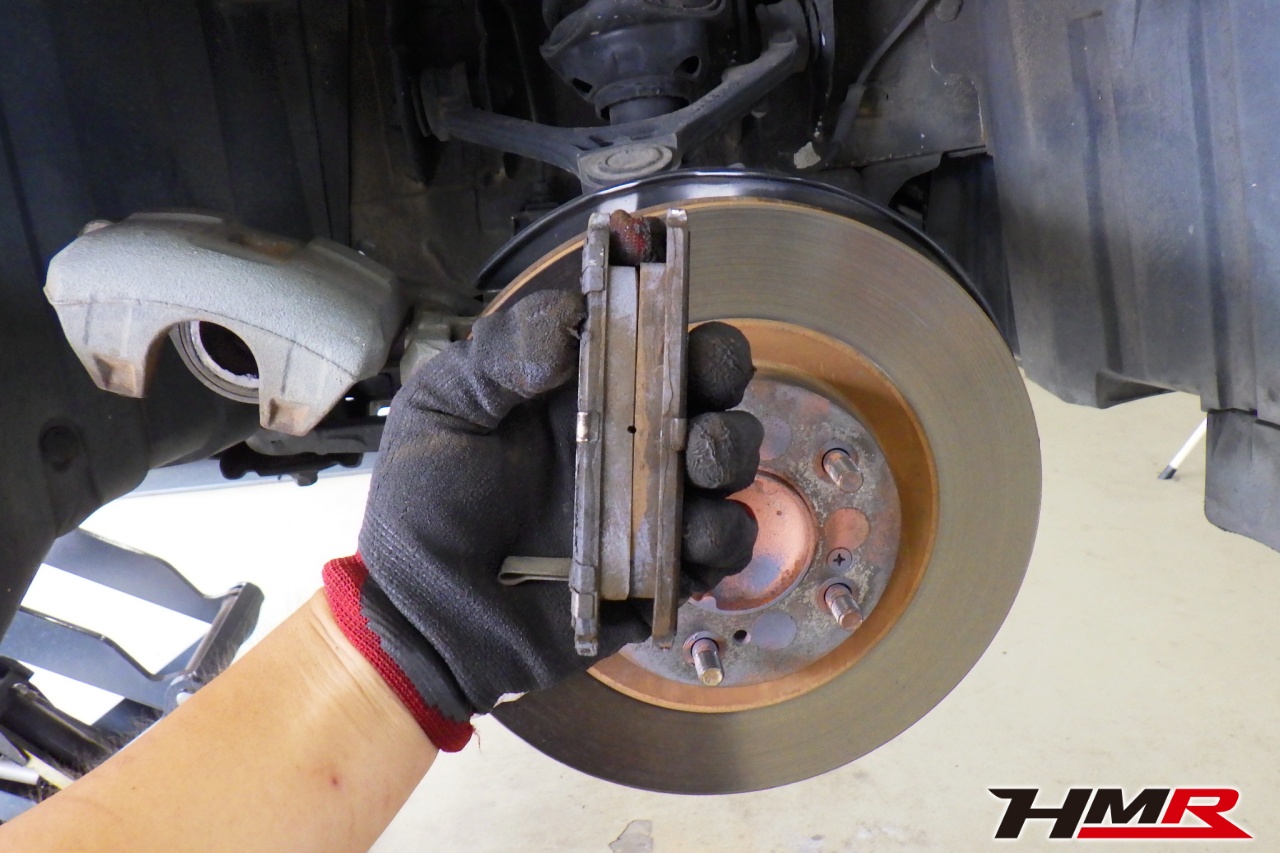 ブレーキキャリパーシール・キャリパーピストン、パッドの残量、ブレーキホースの劣化、ブレーキディスクローターの摩耗をチェックしました。リア左側キャリパーが固着していましたのでオーバーホールを行いました。パッドの残量はフロント7.4mm・リア6.9mmでした。
