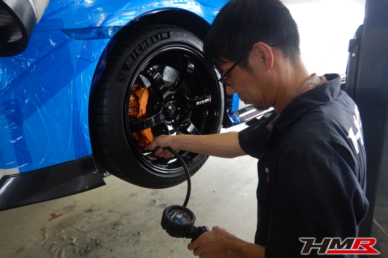 HMR(エイチエムアール)の秋山です。今回はnismoスポリセ nismo用ホイール装備のGTR3.8 トラックエディション engineered by nismo 4WD(R35)の納車前点検整備を行いました。担当メカニックは加藤です。