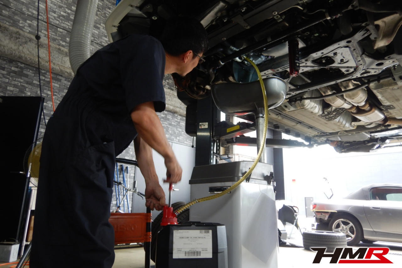 ハブベアリング・ボールジョイント、アーム・リンク類のガタ、ブッシュ・ブーツ類の劣化、エンジン・ミッション・デフからのオイル漏れと各マウント類、タイヤ溝の残量、空気圧の点検しました。特に問題ありませんでした。