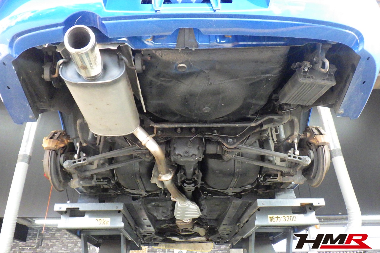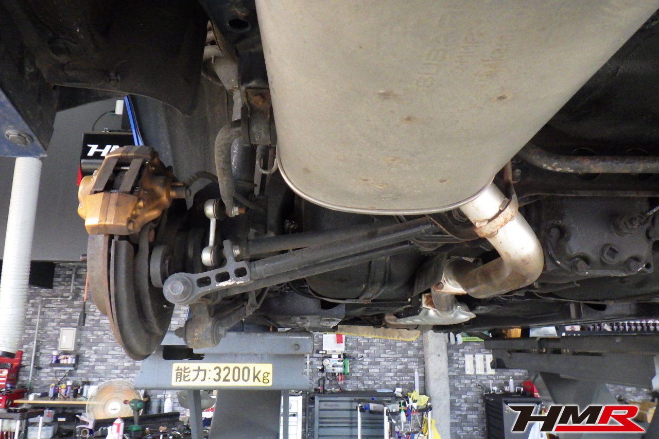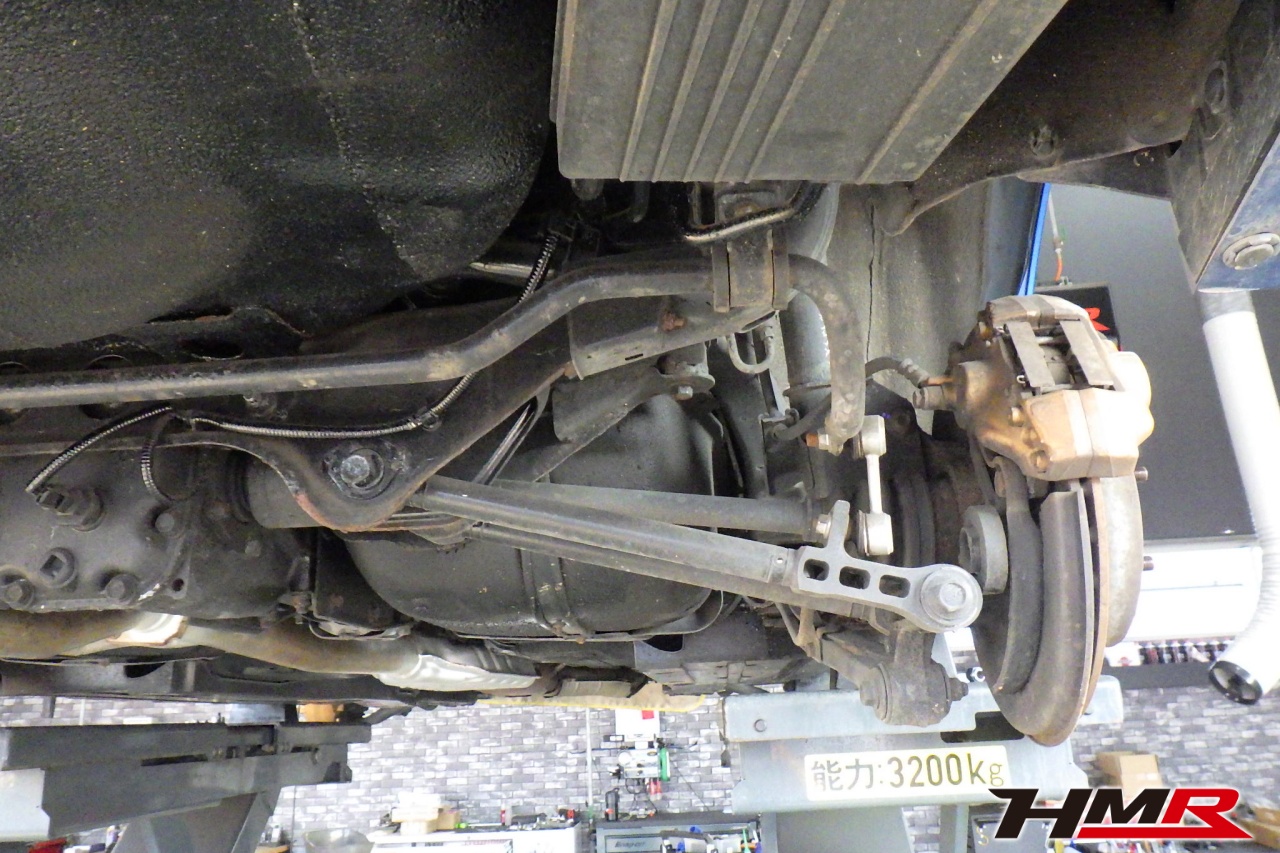 ハブベアリング・ボールジョイント、アーム・リンク類のガタ、ブッシュ・ブーツ類の劣化、エンジン・ミッション・デフからのオイル漏れと各マウント類、タイヤ溝の残量、空気圧の点検しました。特に問題ありませんでした。
