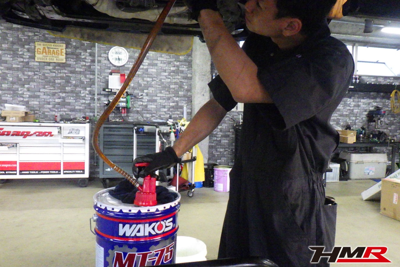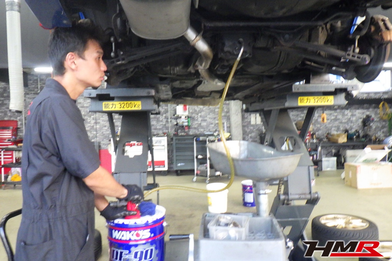 エンジンオイル、オイルフィルター、オイルフィルターセンターボルト、ミッションオイル、リアデフオイル、ブレーキフルード、冷却水を交換しました。エンジンオイルはWAKO’SプロステージS 0W-30、リアデフオイルはWAKO’S ギアオイルMG-90に交換しています。