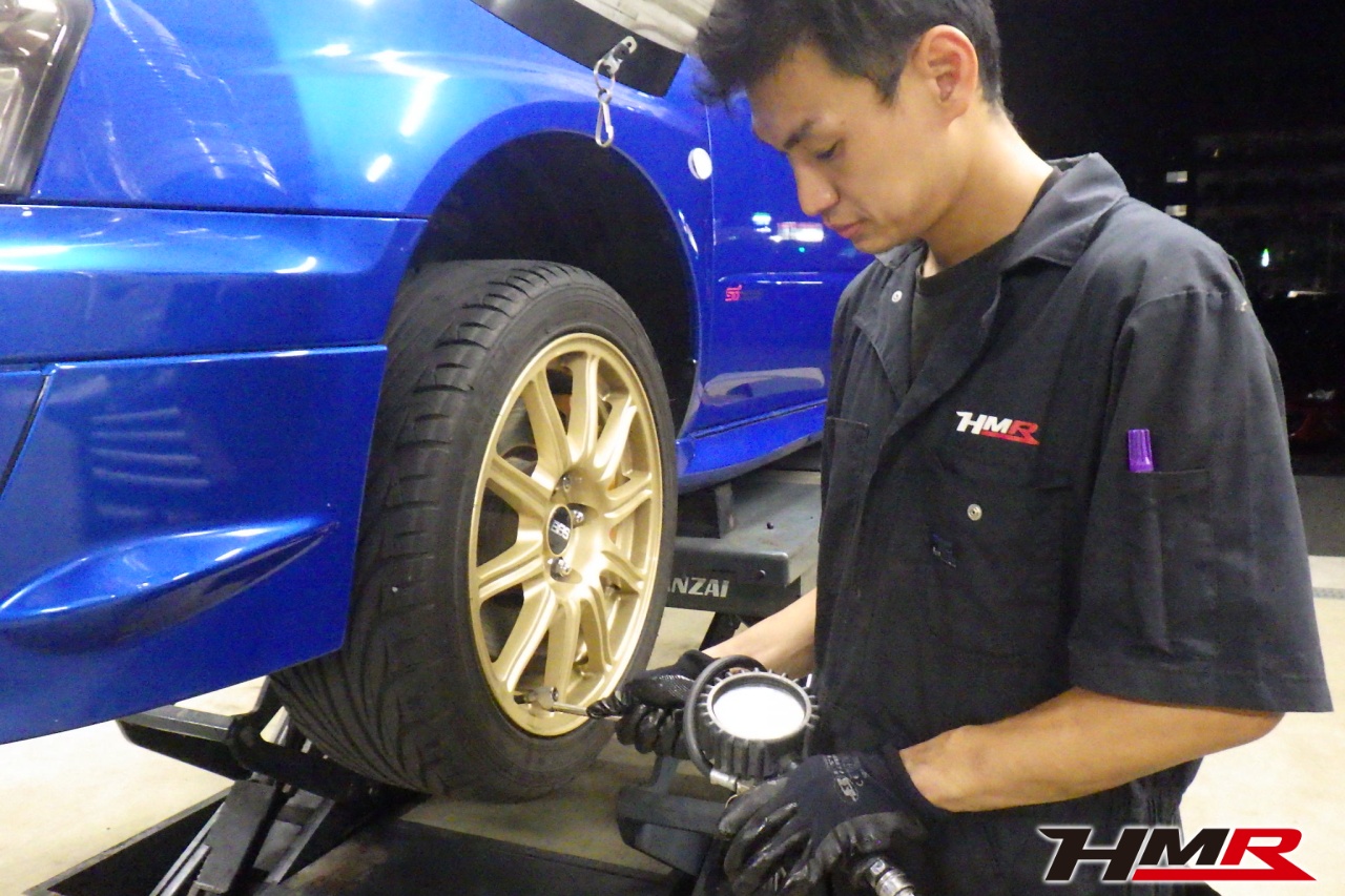 HMR(エイチエムアール)の秋山です。今回はオプションBBS17インチ brembo装備のインプレッサWRX STI (GDB)の納車前点検整備を行いました。担当メカニックは矢澤です。