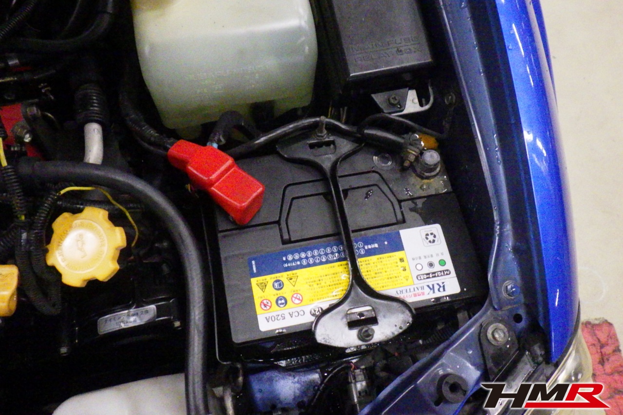 バッテリー、インテークホース、エアクリーナー、補機ベルト、プラグ、ブレーキ・クラッチマスターシリンダー、各部ゴム類の劣化、パッキン類・シール類からのオイル滲み・漏れ、ラジエターの劣化、冷却水漏れ、その他異音などをチェックしました。バッテリー、ウォッシャータンクキャップ、イグニッションコイルカプラーを交換しました。