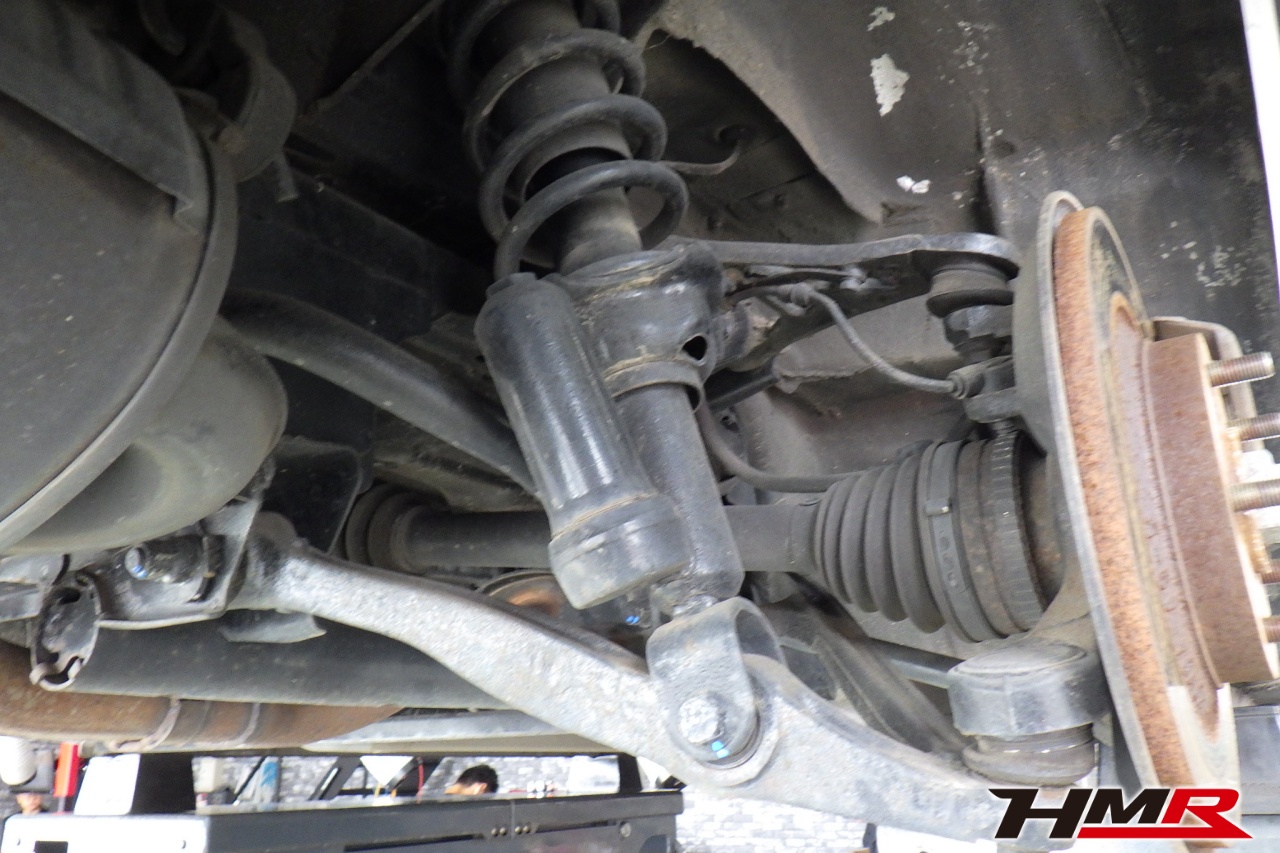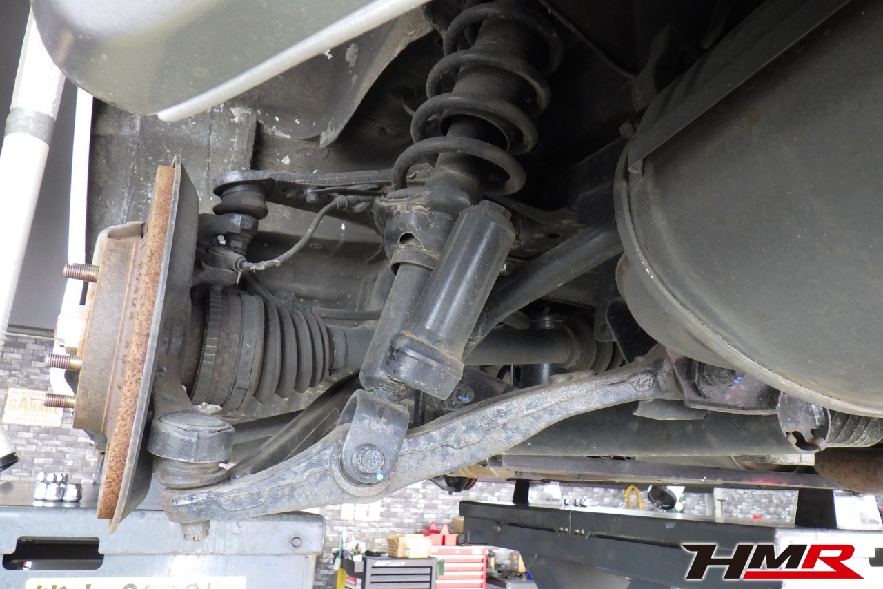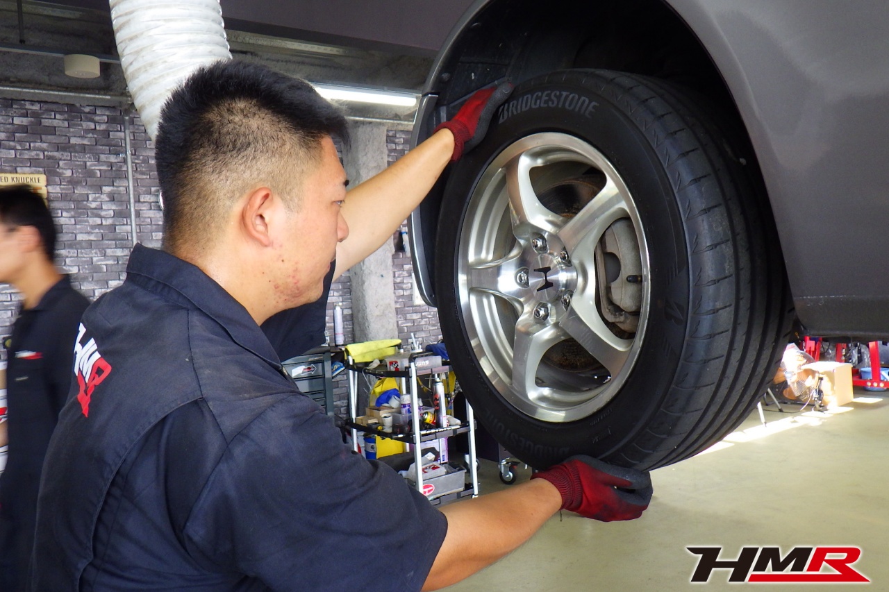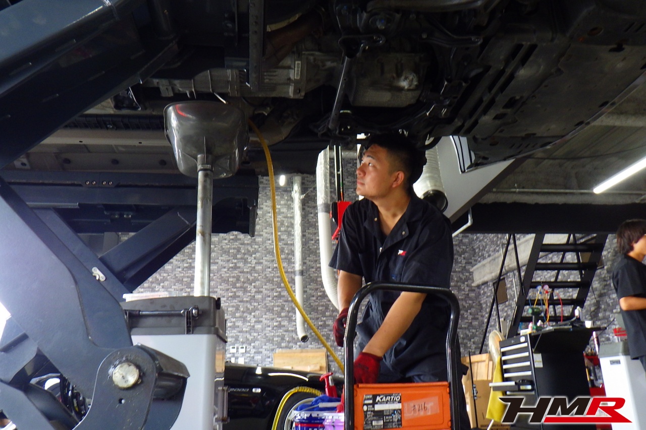 ハブベアリング・ボールジョイント、アーム・リンク類のガタ、ブッシュ・ブーツ類の劣化、エンジン・ミッション・デフからのオイル漏れと各マウント類、タイヤ溝の残量、空気圧の点検をしました。特に問題ありませんでした。