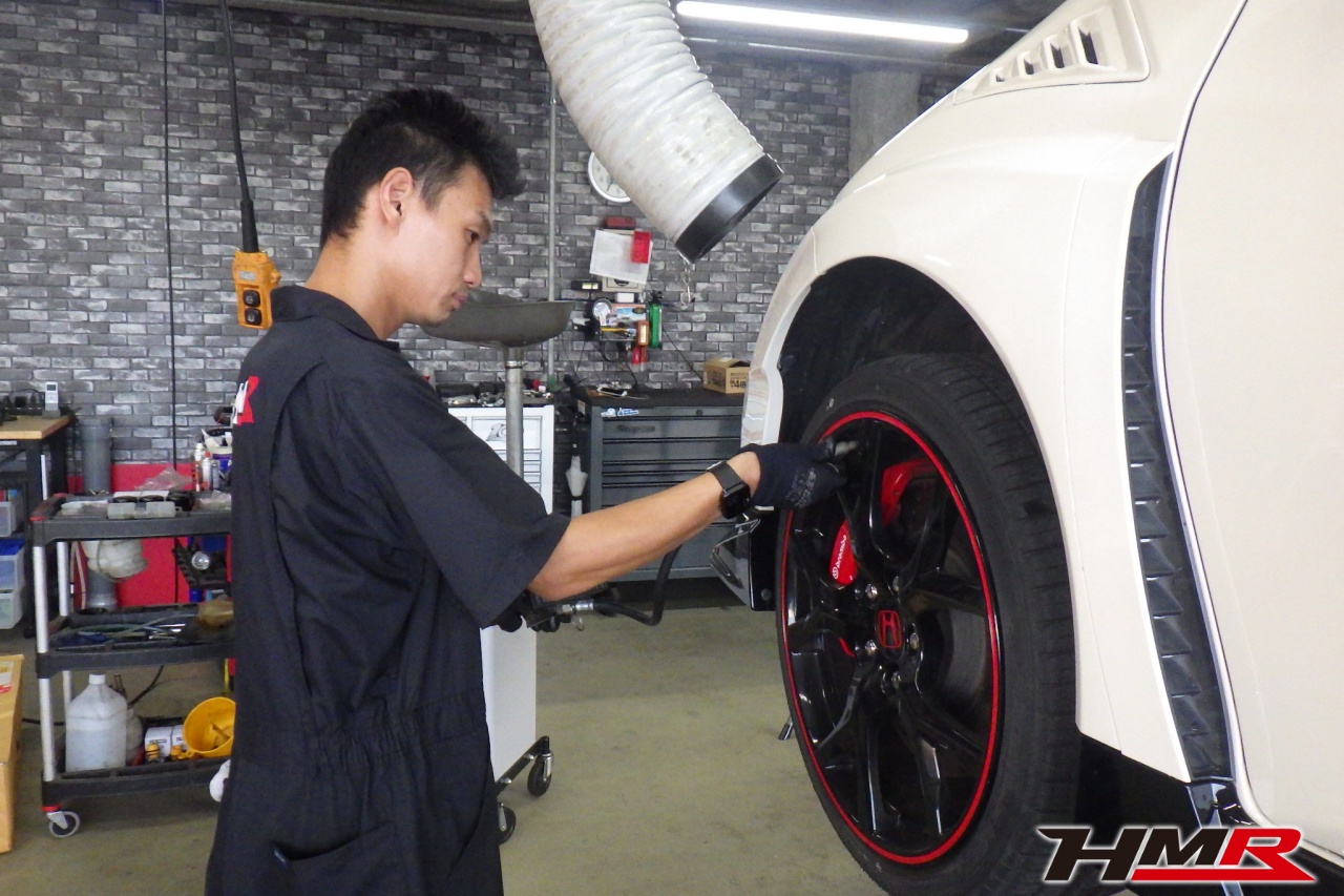 HMR(エイチエムアール)の秋山です。今回は 750台限定 オプションフロントグリル装備のシビックタイプR(FK2)の納車前点検整備を行いました。担当メカニックは矢澤です。
