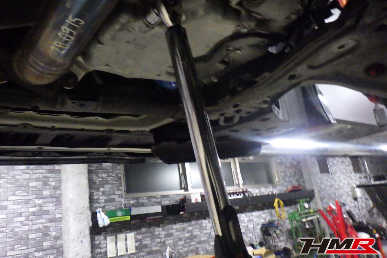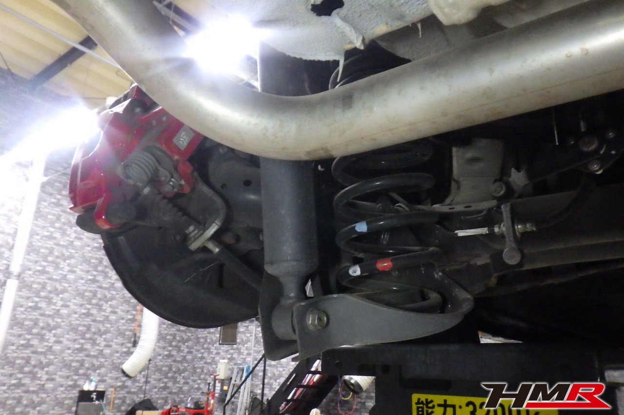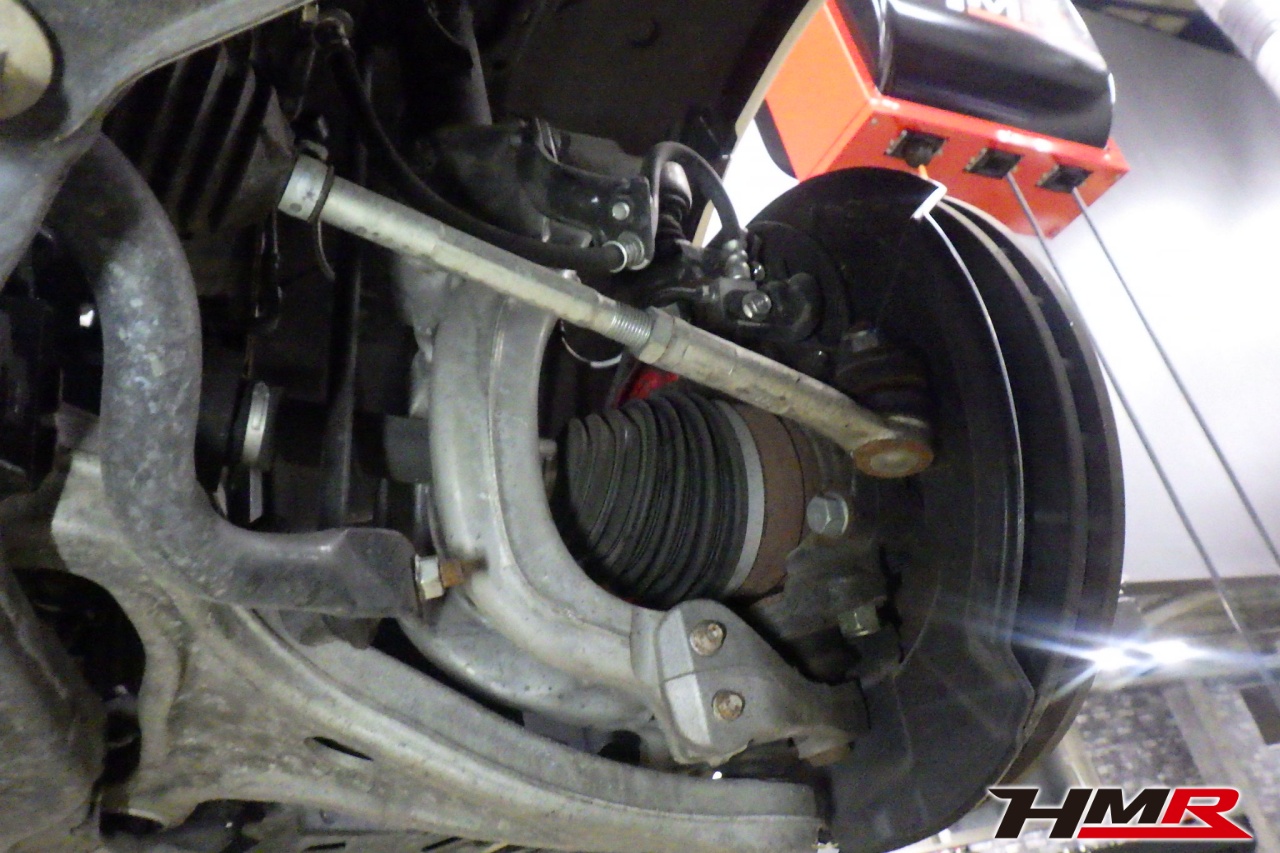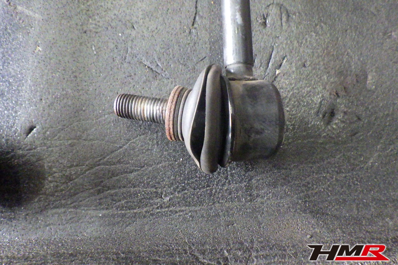 ハブベアリング・ボールジョイント、アーム・リンク類のガタ、ブッシュ・ブーツ類の劣化、エンジン・ミッション・デフからのオイル漏れと各マウント類、タイヤ溝の残量、空気圧の点検しました。左右フロントスタビリンクブーツが切れていましたので交換しました。