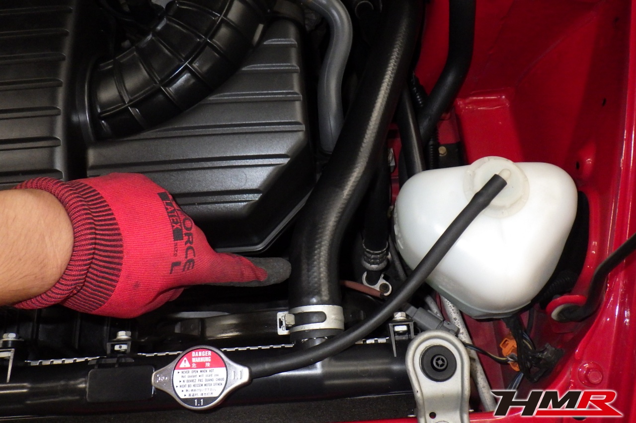 バッテリー、インテークホース、エアクリーナー、補機ベルト、プラグ、ブレーキ・クラッチマスターシリンダー、各部ゴム類の劣化、パッキン類・シール類からのオイル滲み・漏れ、ラジエターの劣化、冷却水漏れ、その他異音などをチェックしました。インテークチューブに切れ、ヘッドカバーパッキンからオイル漏れが見られましたのでそれぞれ交換しました。