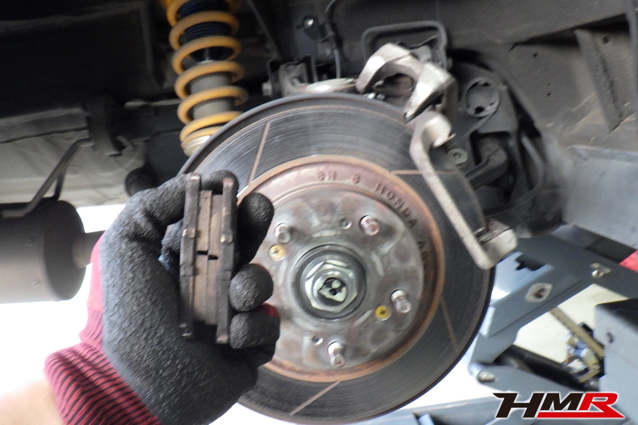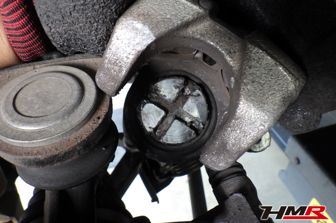 ブレーキキャリパーシール・キャリパーピストン、パッドの残量、ブレーキホースの劣化、ブレーキディスクローターの摩耗をチェックしました。特に問題はありませんでした。パッドの残量はフロント8.7mm・リア6.8mmでした。