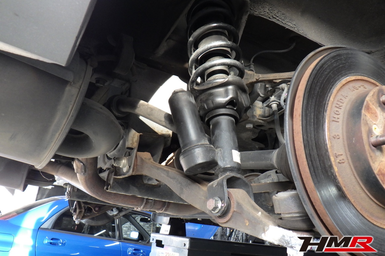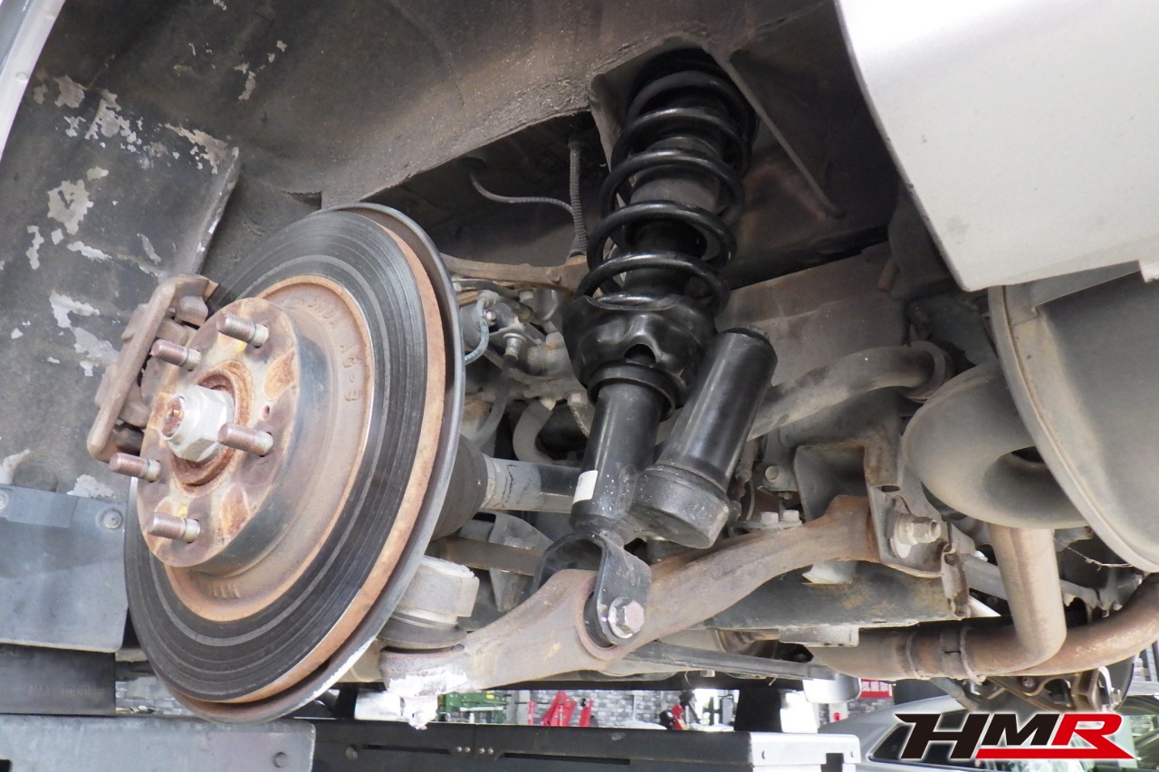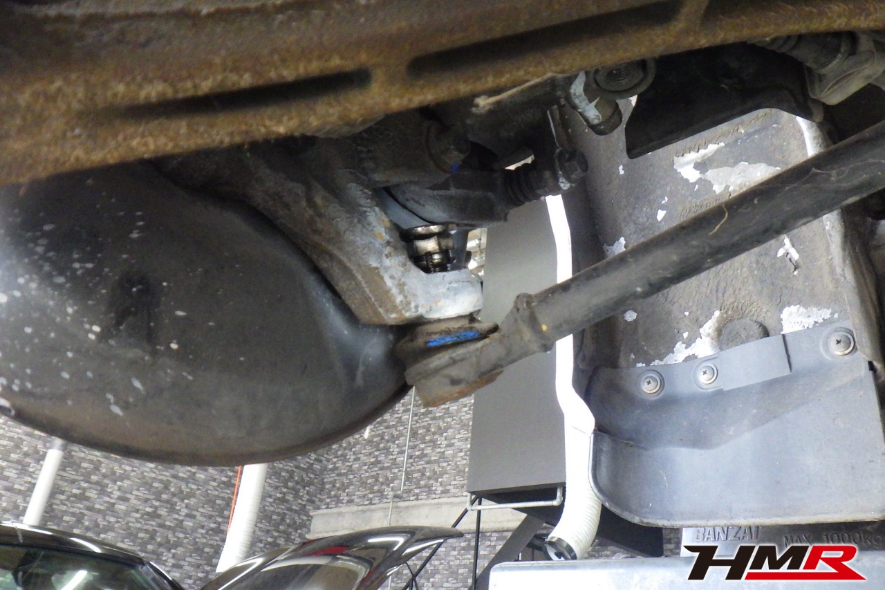 ハブベアリング・ボールジョイント、アーム・リンク類のガタ、ブッシュ・ブーツ類の劣化、エンジン・ミッション・デフからのオイル漏れと各マウント類、タイヤ溝の残量、空気圧の点検を行いました。特に問題ありませんでした。タイヤの残り溝はフロント6.2mm・リア4.6mmでした。