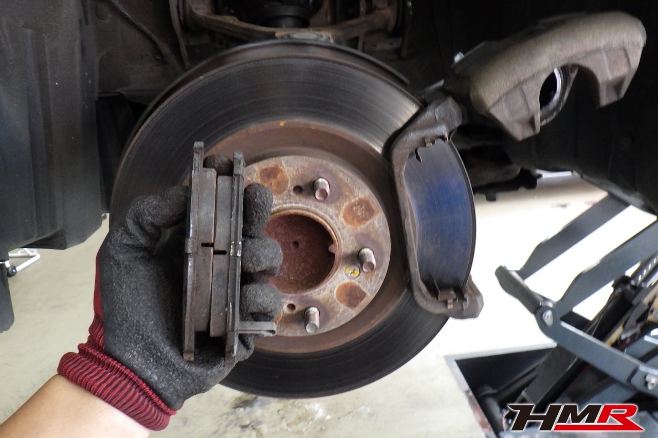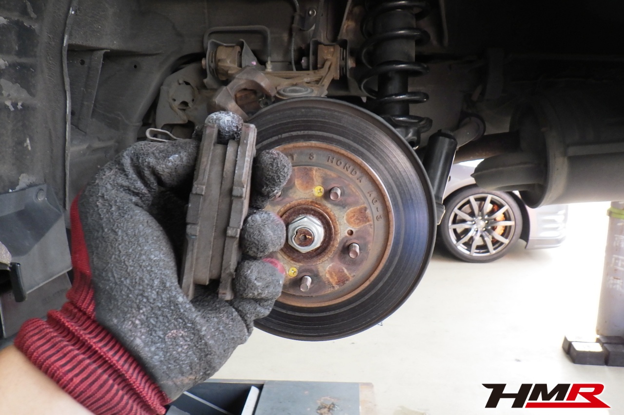 ブレーキキャリパーシール・キャリパーピストン、パッドの残量、ブレーキホースの劣化、ブレーキディスクローターの摩耗をチェックしました。特に問題はありませんでした。パッドの残量はフロント9.3mm・リア5.8mmでした。
