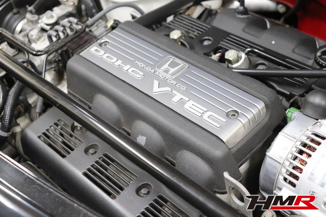 NSXの心臓部には、ホンダがF1で培った技術の粋を集めた、3.0L V6 DOHC VTECエンジン「C30A」が搭載されています。3.0L V6 自然吸気 / 最高出力 280PSを発揮するこのエンジンは、 スペックシートの数字以上にその中身はレーシングエンジンそのものです。量産車として世界で初めてチタン製コンロッドを採用するなど、コストを度外視した高価で高精度なパーツを惜しみなく投入。職人が一基一基を手作業で組み立てていました。