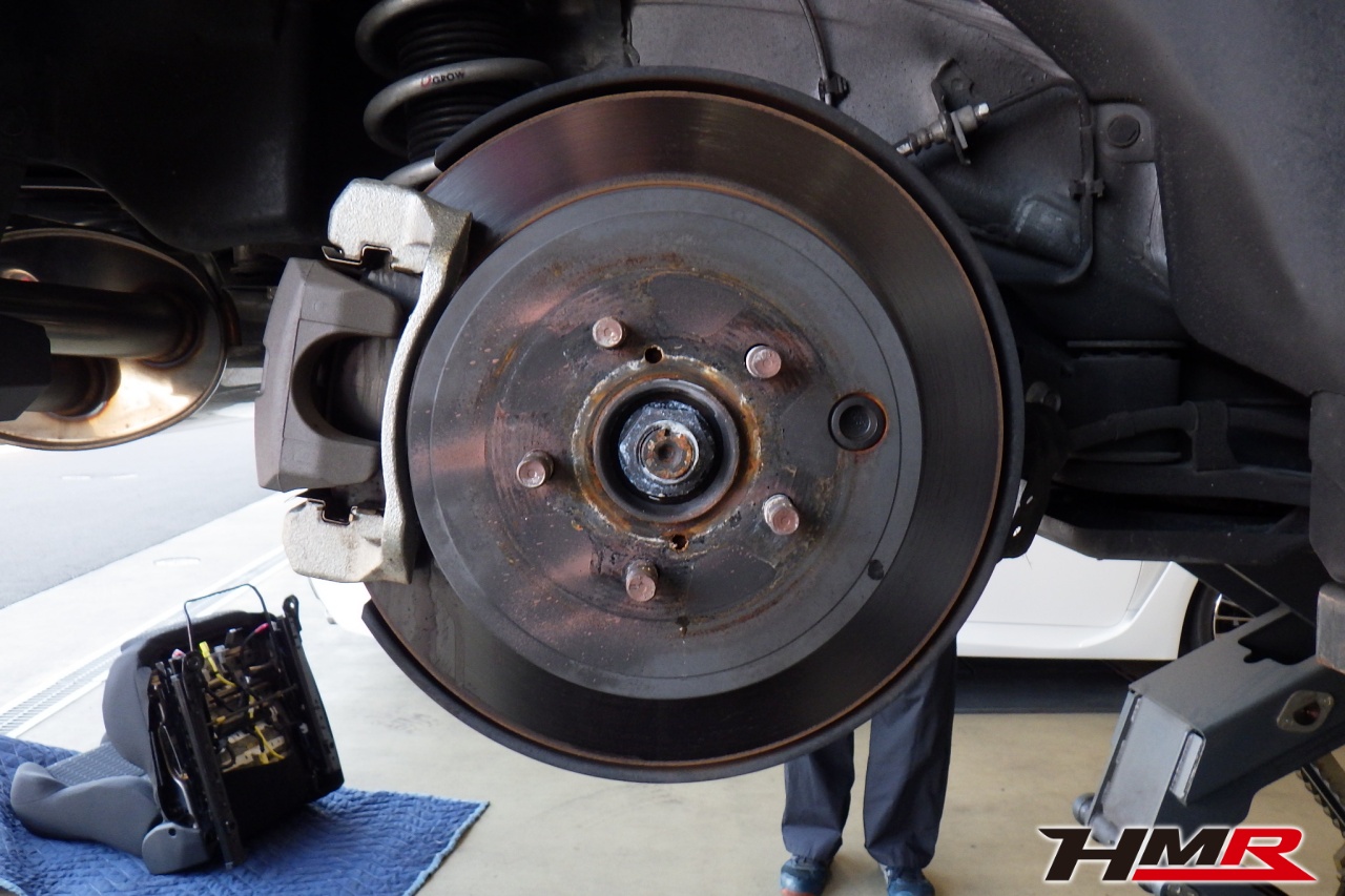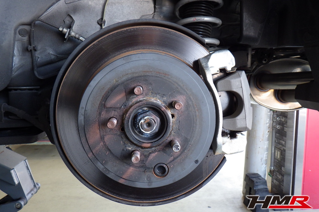 ブレーキキャリパーシール・キャリパーピストン、パッドの残量、ブレーキホースの劣化、ブレーキディスクローターの摩耗をチェックしました。特に問題ありませんでした。パッドの残量はフロント10.0mm・リア10.0mmでした。