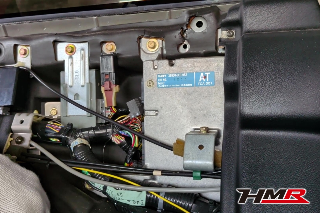背面のパネルを外すとECUや、元々オートマだった名残のオートマコンピューターが登場。このNSXはNA2の6速ミッションに換装済みの車両です。