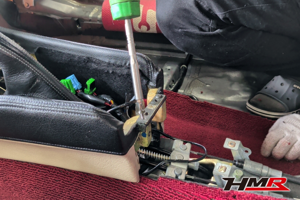 センターコンソールを取り外します。設計が1980年代ということもあり、「ネジ何本あるの?」というくらいネジ止めだらけでした。