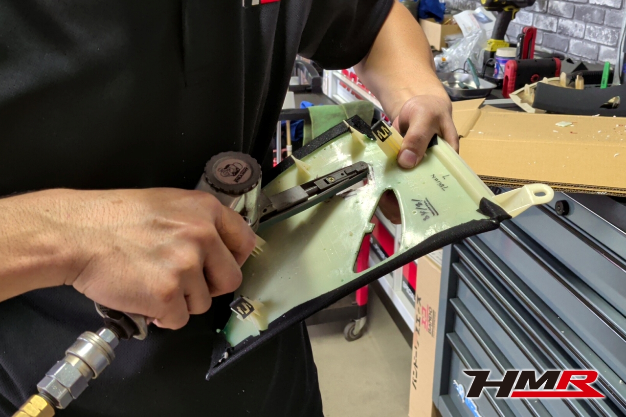 ピラーバーが付いていた部分のパネルは、そのままだとピラーバーの取付けができないので加工します。