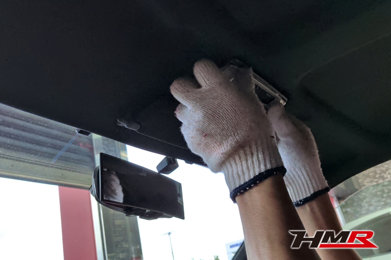 バイザー&ルームランプの取り外し。この時代のバニティミラーは助手席側のみでした。