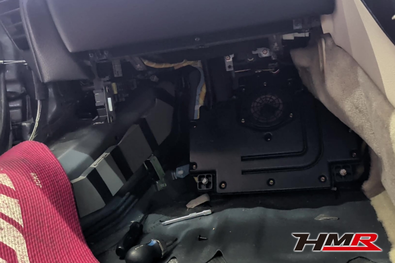 左側も同じように作業していくのですが助手席側の足元にはなんと、スピーカーが設置されているのが発見されました!
