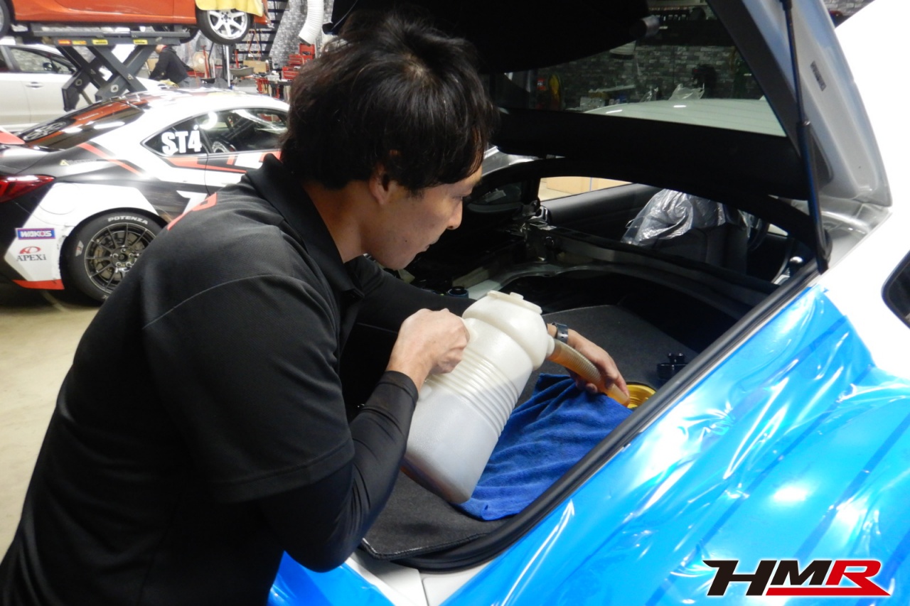 エンジンオイル、オイルフィルター、オイルフィルターセンターボルト、クーラント液、ミッションオイル、リアデフオイル、ブレーキフルード、クラッチフルードを交換しました。エンジンオイルはWAKO’SプロステージS 、ミッションオイルはWAKO’S MT75、リアデフオイルはWAKO’S ギアオイルDF-90に交換しています。