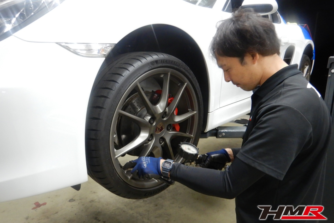 HMR(エイチエムアール)の秋山です。今回はスポーツクロノパッケージ PASM装備のポルシェケイマン2.7(981MA122)の納車前点検整備を行いました。担当メカニックはムラマツです。